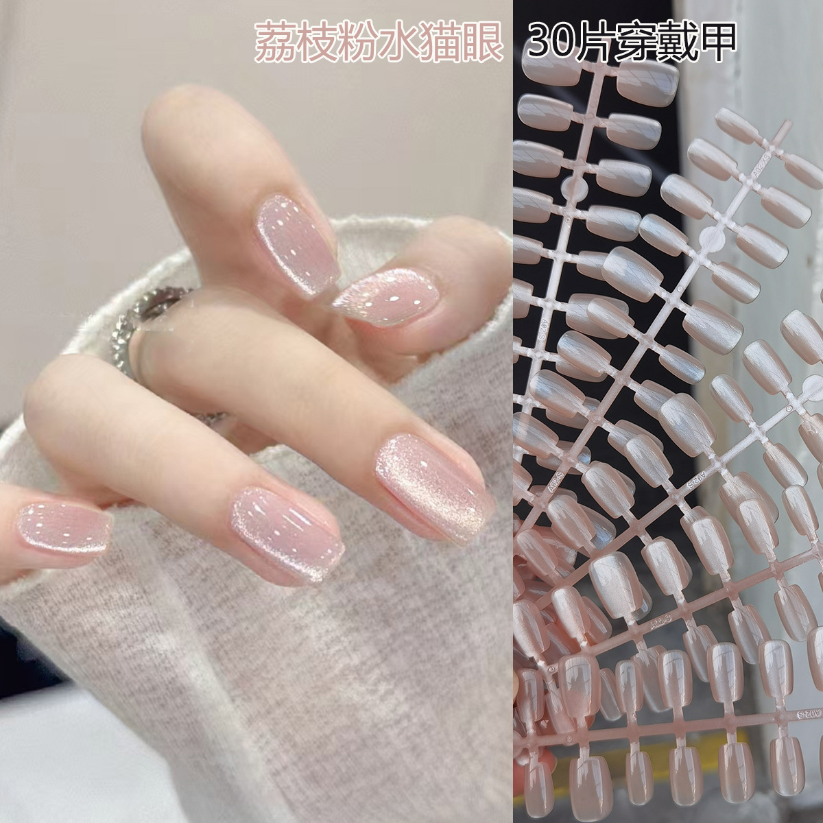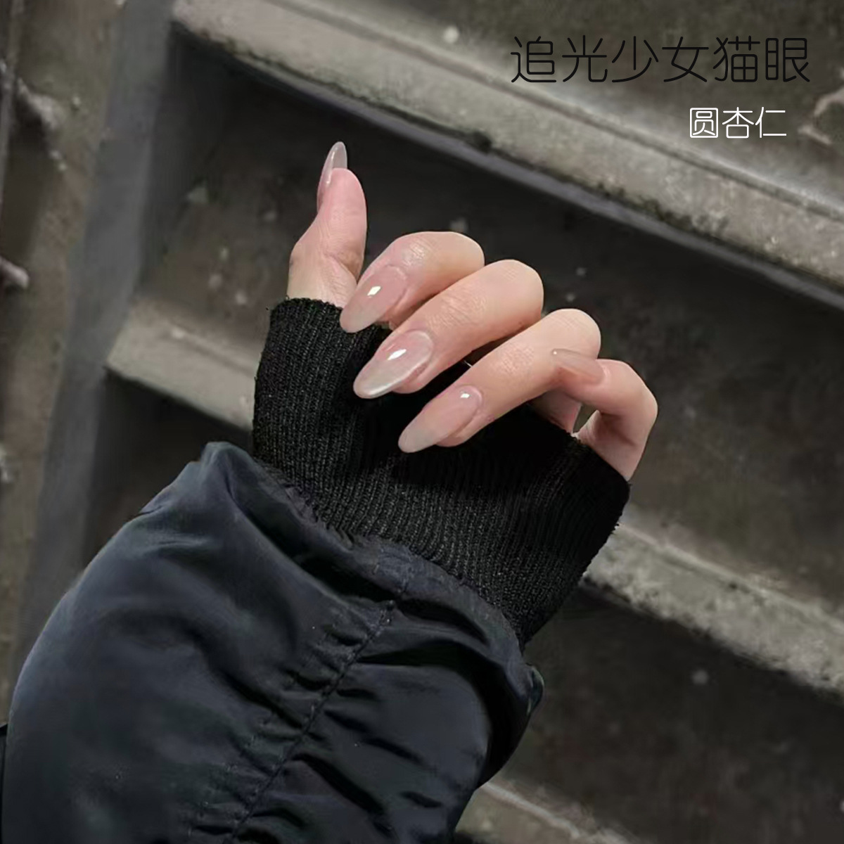 光を追う少女 猫目ネイルチップ ラウンドアーモンド ウォーターグロウキャットアイネイルストリップ ピュアヌードカラー プレメイド 小紅書人気商品