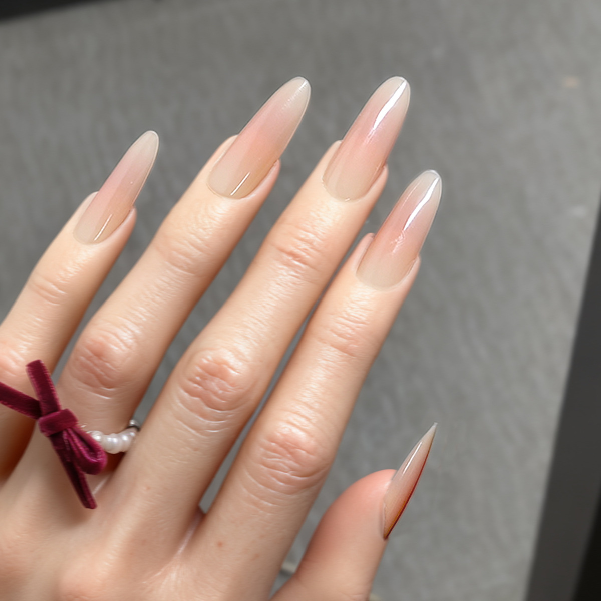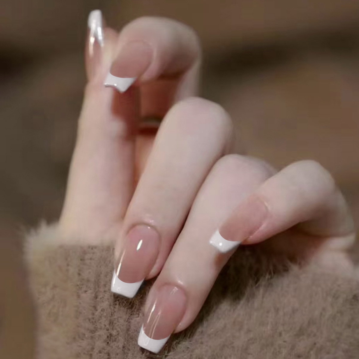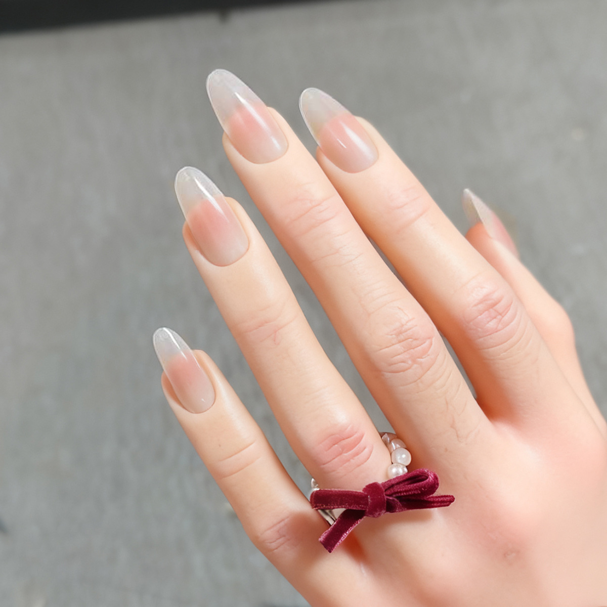 白湯裸白グラデーション長アーモンドは手の長いネイルアートの長さの尖った円3.0の長いタイプは甲のプレハブを着ています。