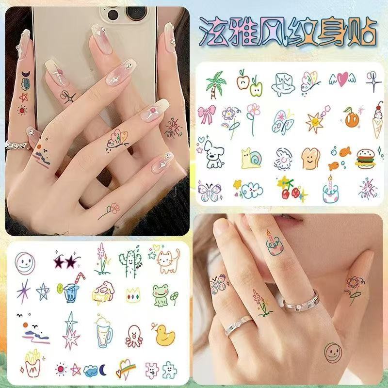 韓国の小さなかわいい漫画のタトゥーステッカー、見栄えの良いニッチな色、甘くてクールな純粋な欲望のステッカー、美しい学生