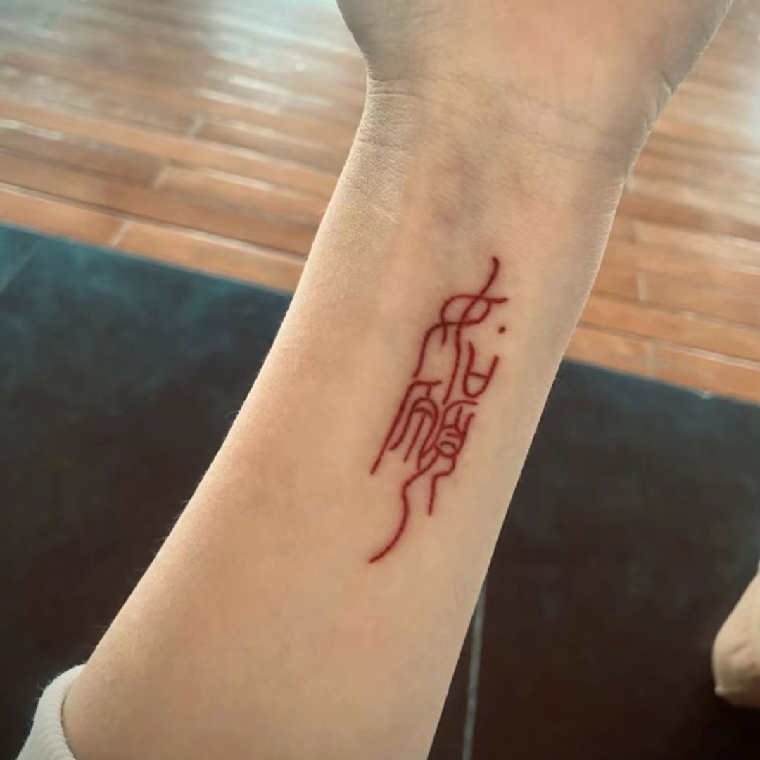 望み通りに赤い文字の刺青は防水で長持ちします。