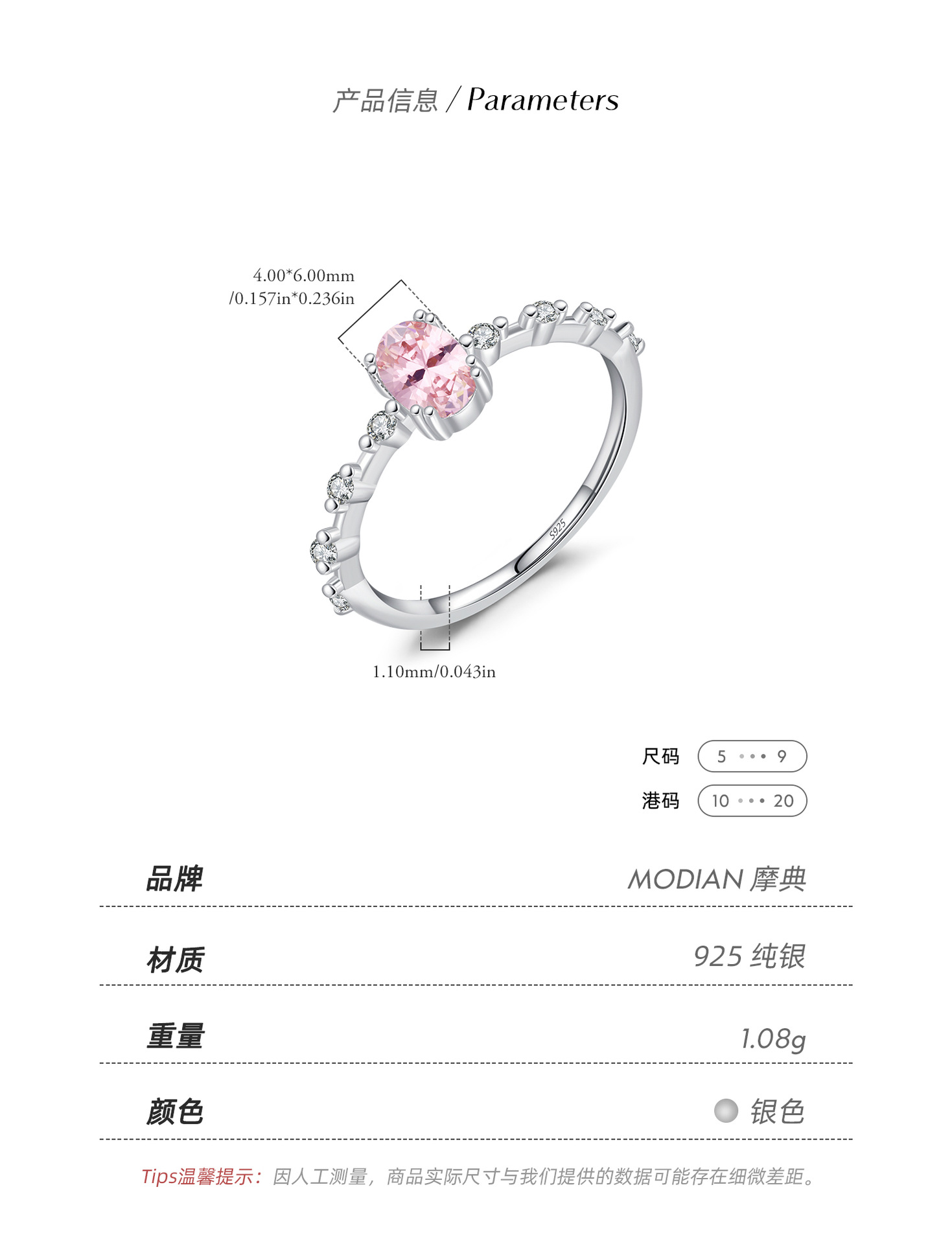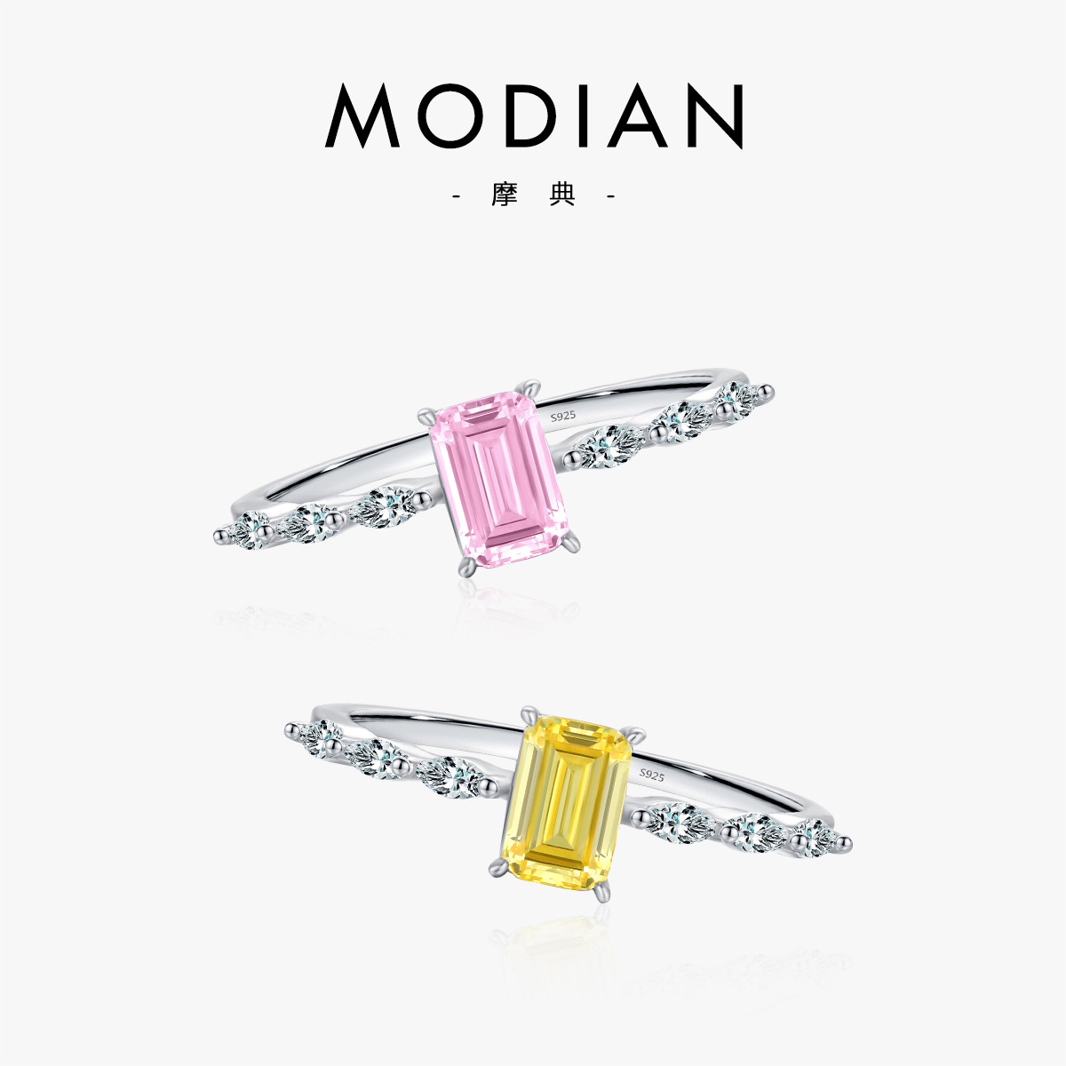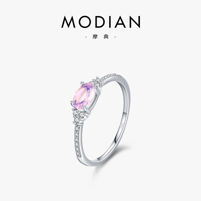 MODIAN摩典s925純銀の精緻な高貴なプリンセスの甘いピンクのダイヤモンドの指輪の指輪の女性