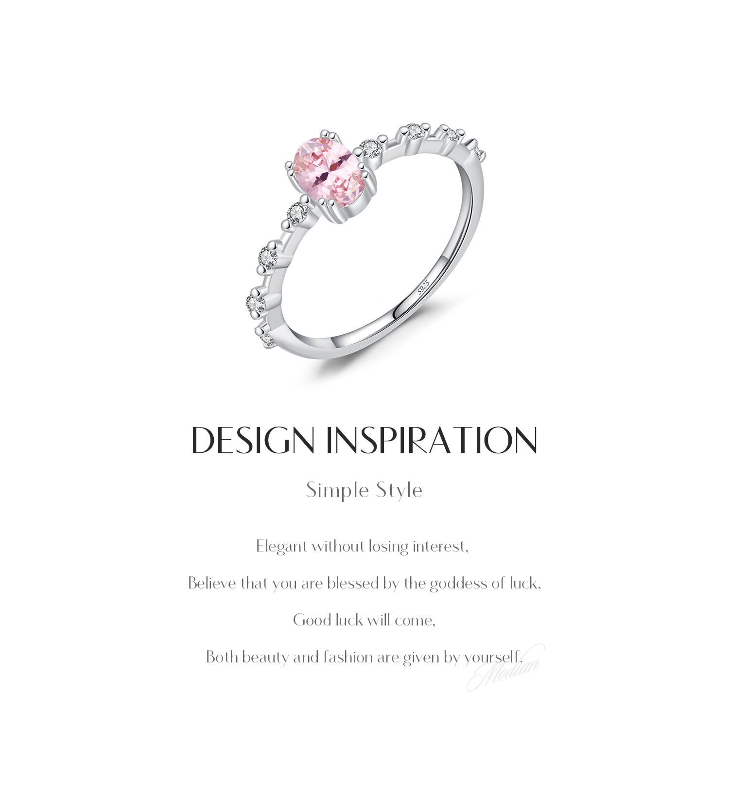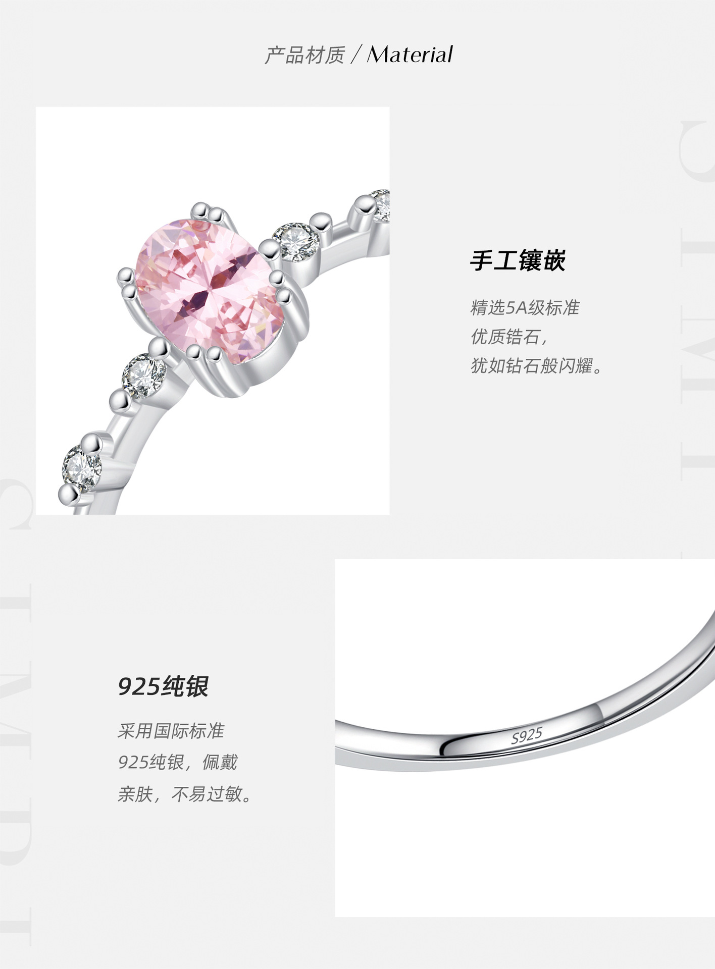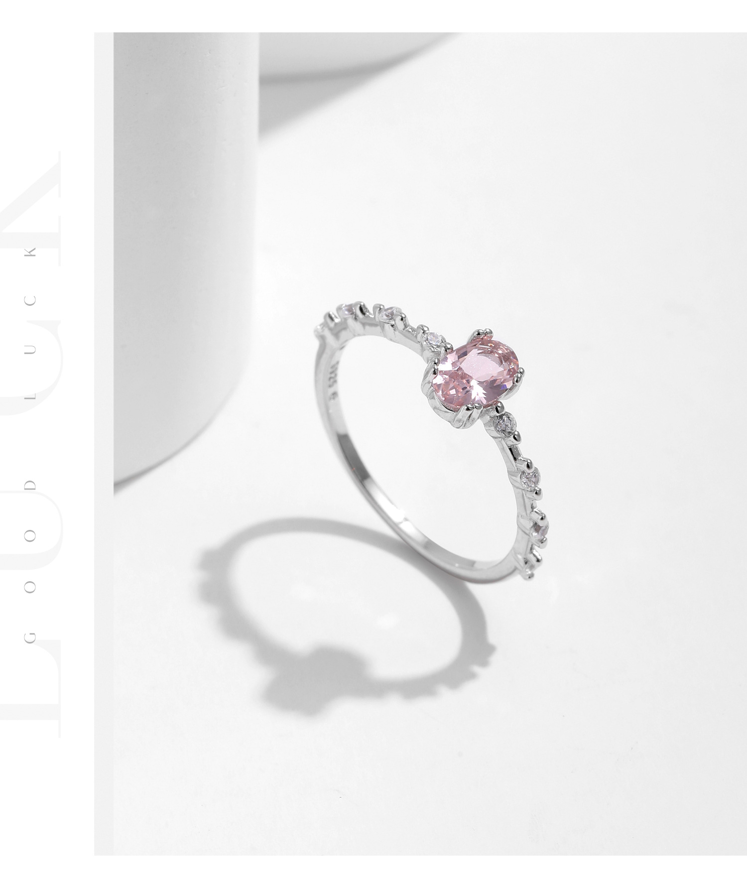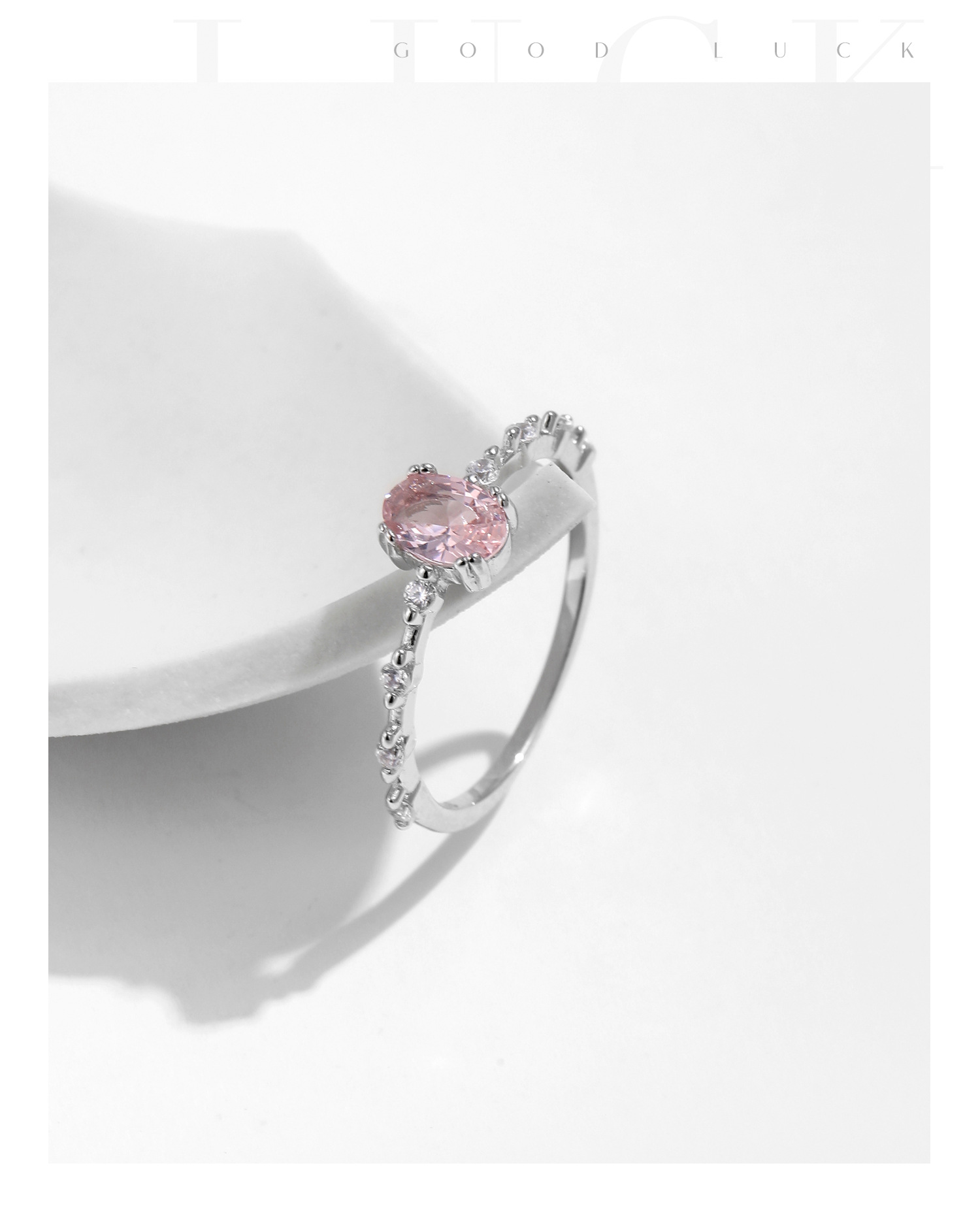 シンプルな大衆デザインs925銀楕円形粉晶指輪女軽贅沢ファッションアマゾン人気指輪アクセサリー