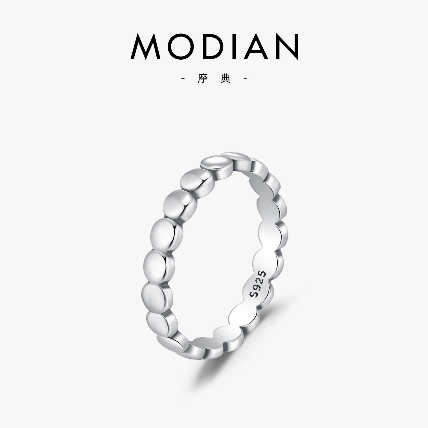 MODIAN摩典S925纯银复古轻奢做旧银豆豆戒指女简约时尚冷淡风指环
