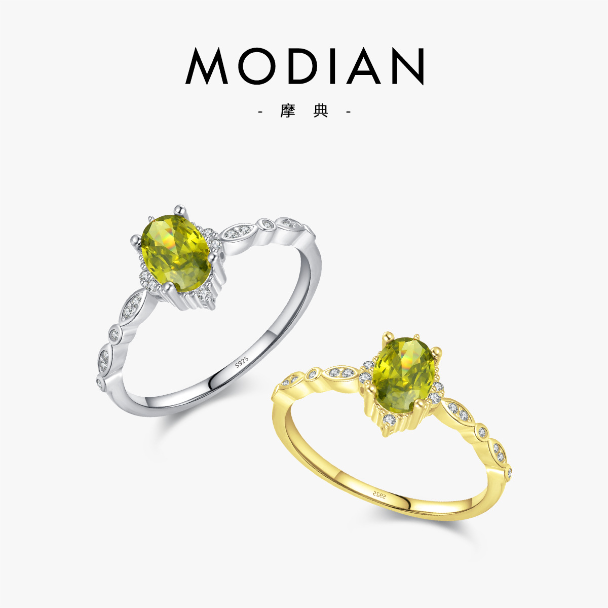 Modian 925純銀多色卵面指輪の女性は、贅沢で洗練された欧米風が優雅な指輪を輝かせている