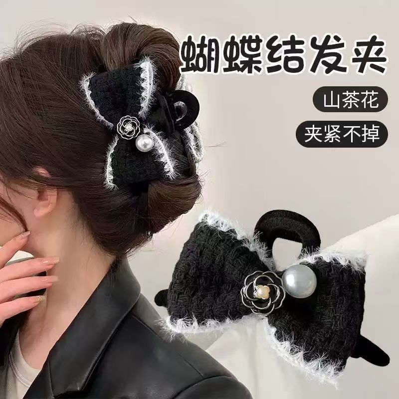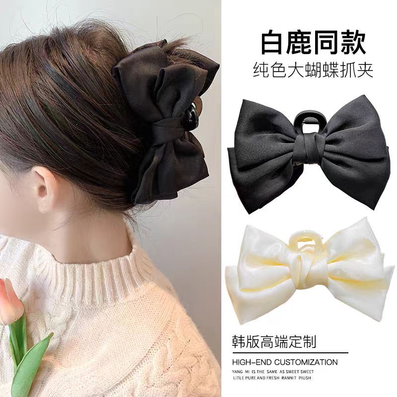 シンプルな蝶ネクタイのクリップ女性2024新高級感半髪クリップ後頭部サメクリップ中号クリップ