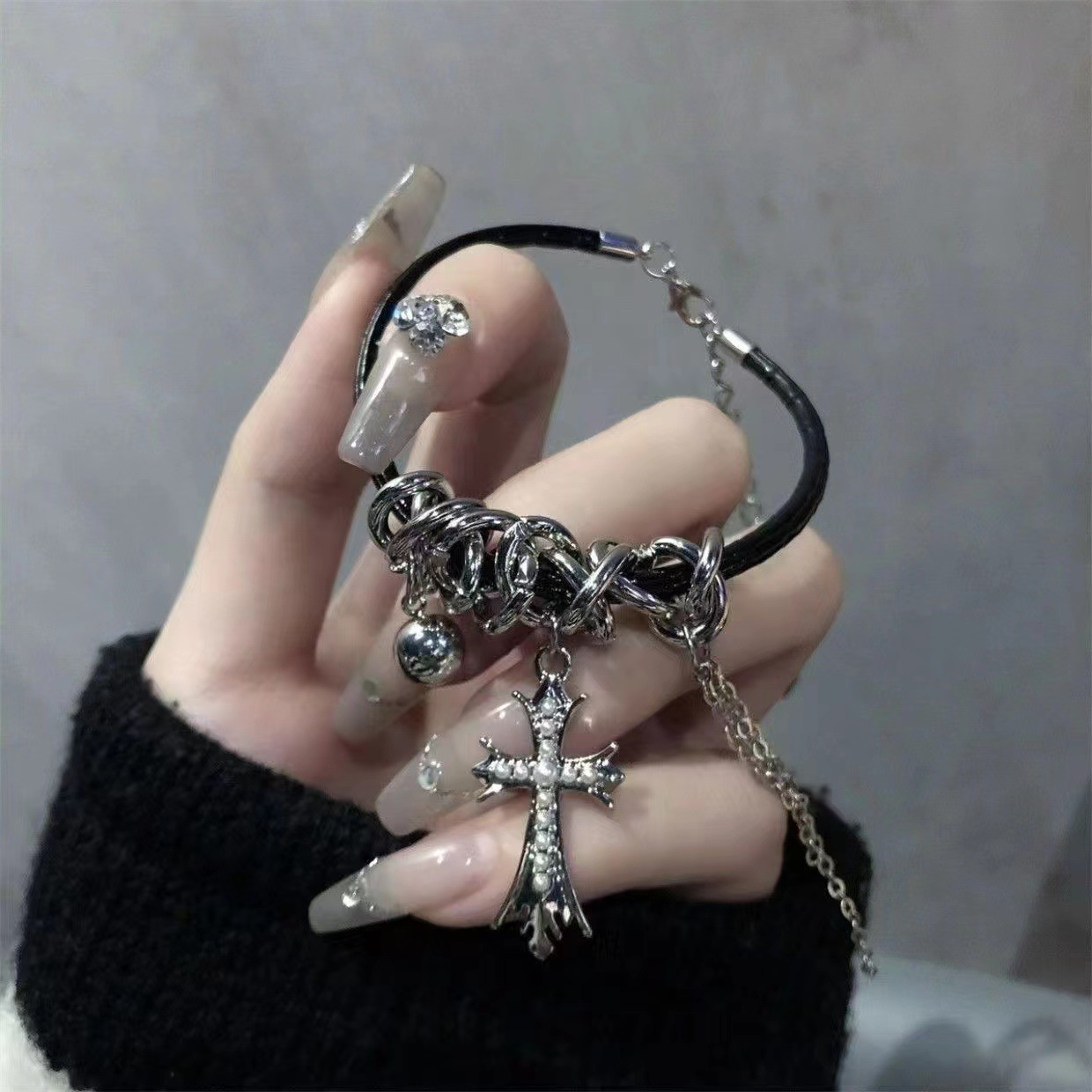 Y2Kダーククロス鉄リングpuブレスレットネックレスギャル亜文化甘いクールなアクセサリーパンク小衆デザイン亜