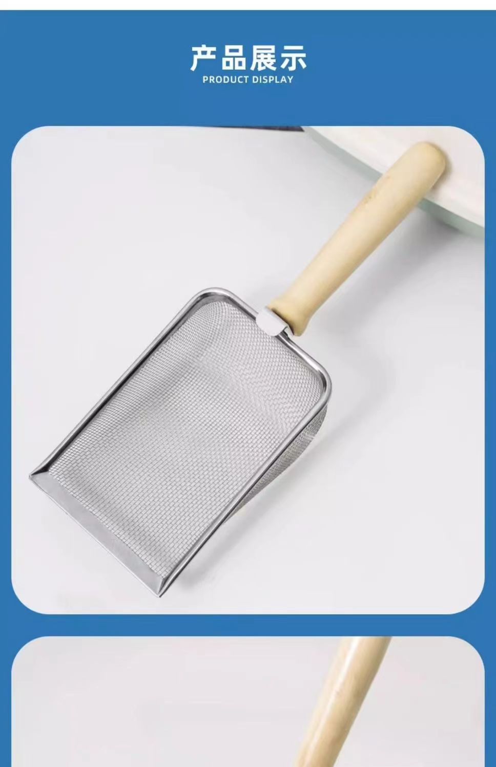 厂家现货木柄猫砂铲细孔不锈钢金属小颗粒矿砂铲子小孔猫咪膨润土