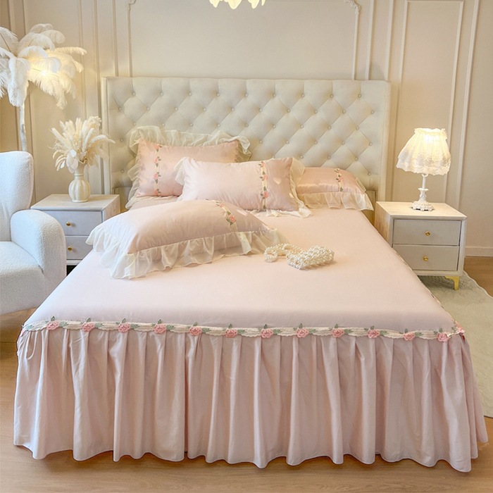 南通ホームテキスタイルフレンチレースコットンサテンジャカードベッドスカート3点セットベッドカバーシーツ夏の寝具4点セット