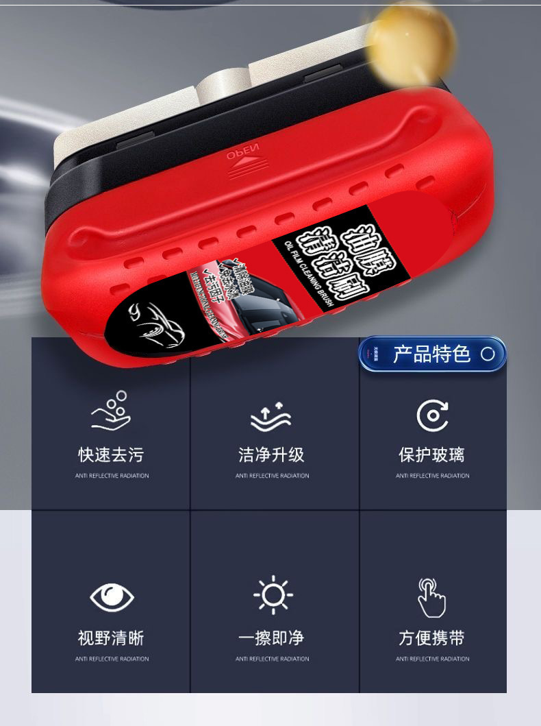 汽车玻璃油膜刷去除剂红色强力去除前内挡风玻璃后视镜油膜清洁擦