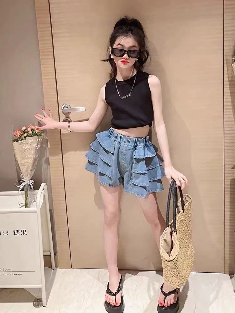薄手デニムショートパンツグループ,黒のコットンTシャツ+薄手のデニムショートパンツスカート,白い綿のTシャツ+薄いデニムのショートパンツとスカート,グレーのコットンベスト+薄手のデニムショートスカート,ブルーのコットンベスト+薄手のデニムショートスカート,ピンクのコットンベスト+薄手のデニムショートスカート,白い綿のベスト + 薄いデニムのショート スカート,黒のコットンベスト+薄手のデニムショートスカート,白い綿のベスト,ピンクのコットンベスト,スカイブルーのコットンベスト,グレーのコットンベスト,黒のコットンベスト,ブラック コットン T シャツ,ホワイトコットンTシャツ