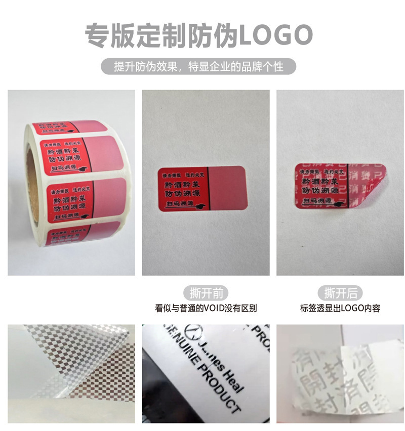 引き裂かれると、理由のない返品防止ラベルに傷のない偽造防止シールが無効シールを引き裂くことをサポートしていません