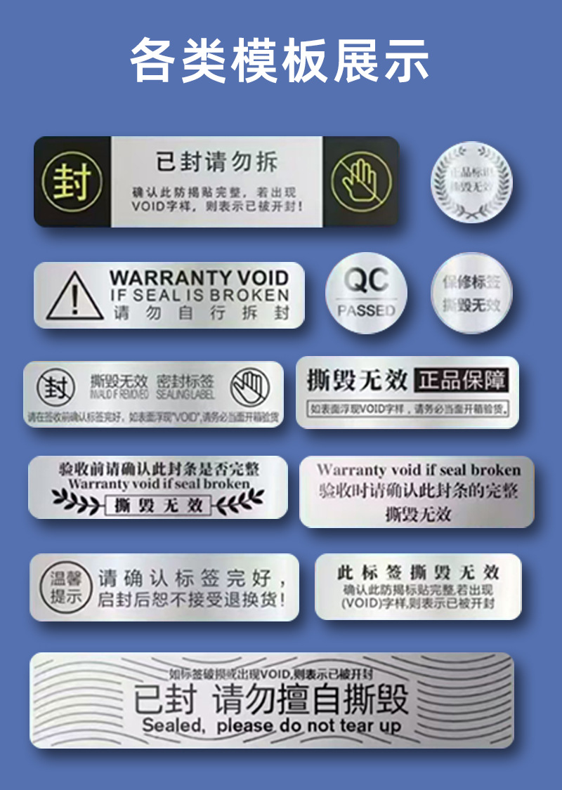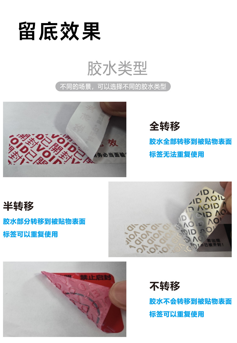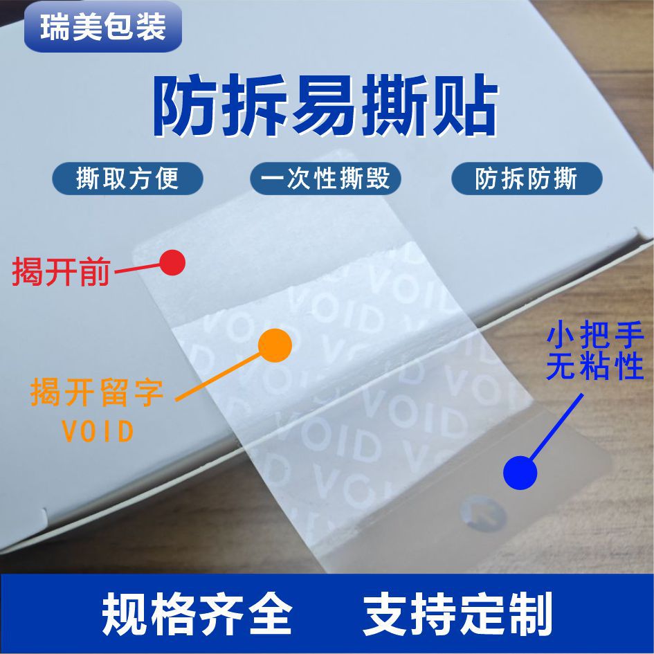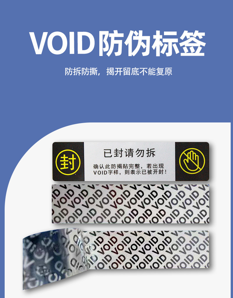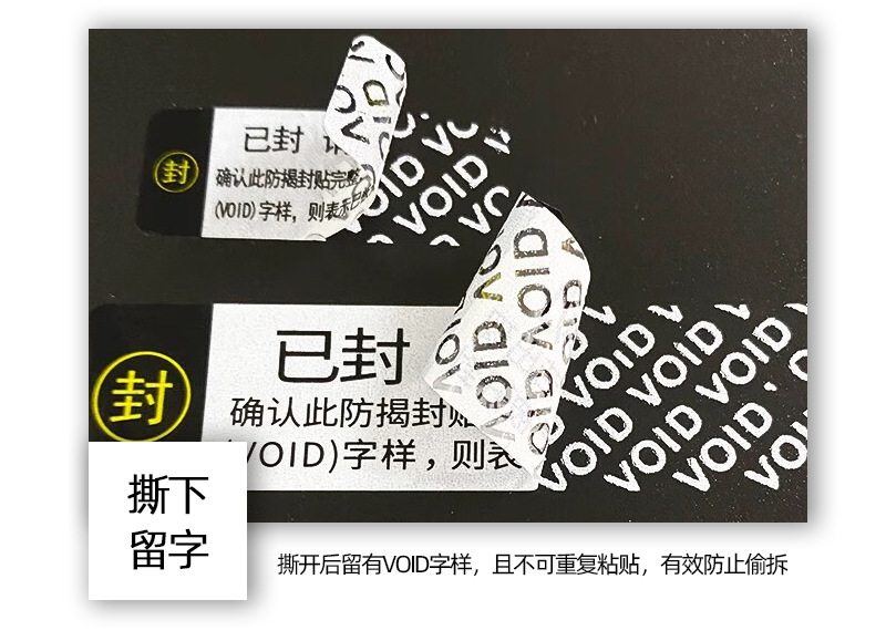 VOID偽造防止ラベルの引き裂き防止シールは現物を貼り付けます。
