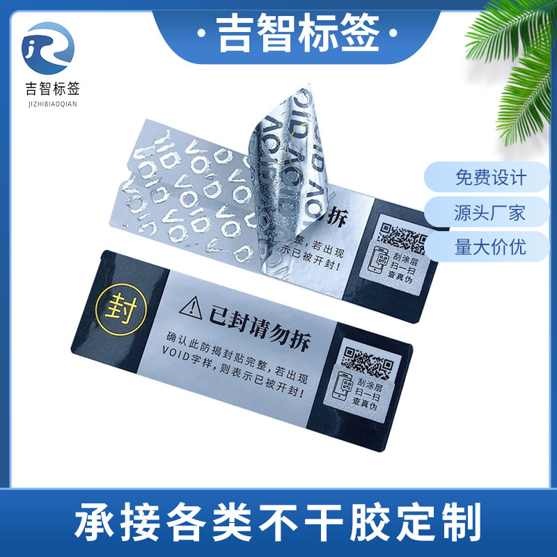 無効な偽造防止ラベル、カスタマイズされたシールステッカー、自己粘着破損無効、剥がすと文字が残る、使い捨ての改ざん防止および破れ防止ステッカー