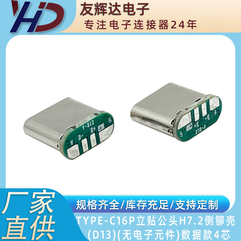 Type-c 16P 立贴 7.2mm 侧铆 D13 数据款 插头 4芯 无电子元件