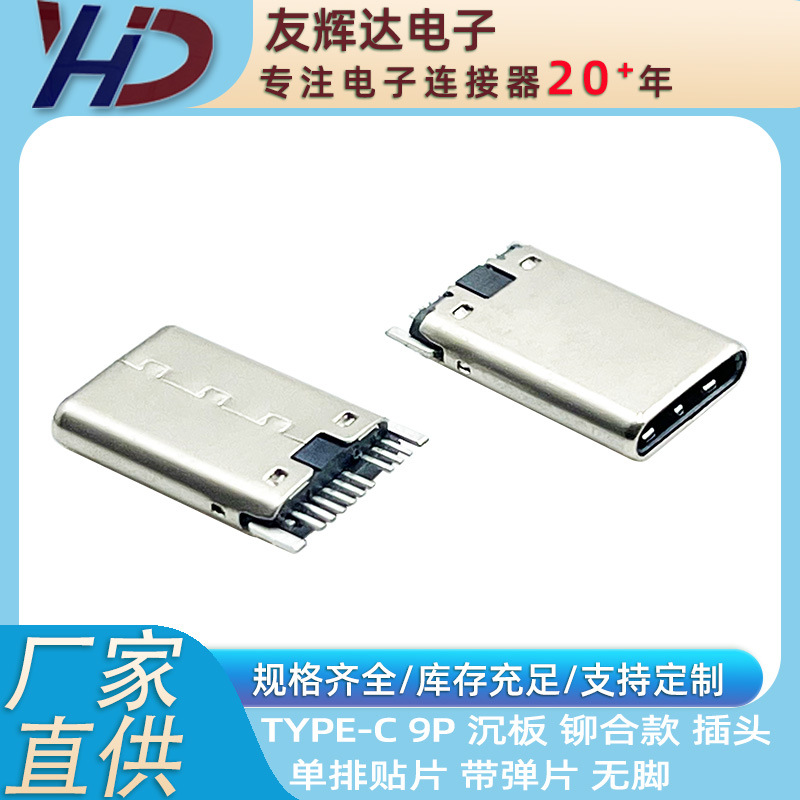 友辉达 TYPE-C 9P 沉板 铆合款 单排立贴 平角 带弹片 插头