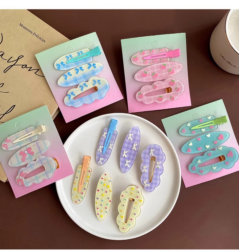 夏のサイドクリップ後頭部アクリルシンプル愛トランペットクリップ気質前髪クリップ高級感ヘアクリップ