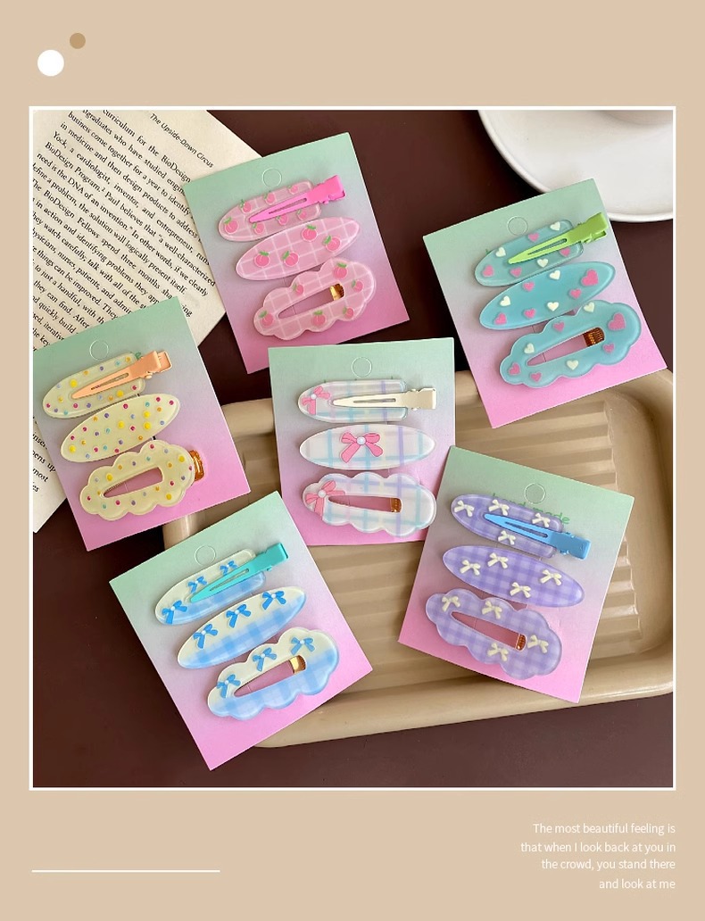 1#チェック柄ピーチ3点セット,2#イエロードット3点セット,3#ピンクリボン3点セット,4#グリーンラブ3点セット,5#パープルチェック柄3点セット,6#ブルーリボン3点セット