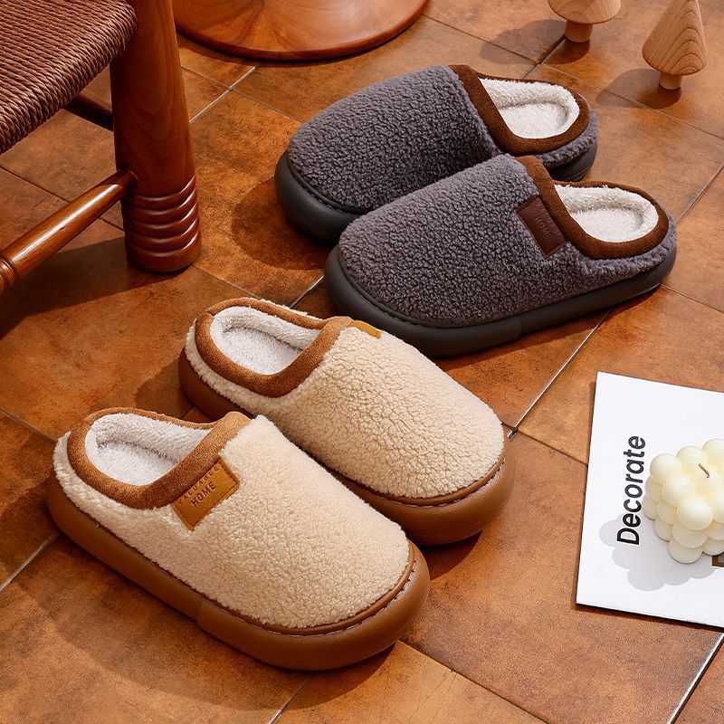 新款成人棉拖鞋秋冬季情侣防滑室内家居家用保暖厚底简约男士拖鞋