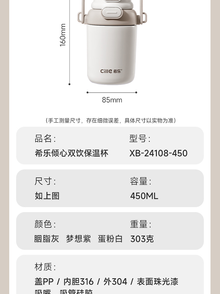 450ml アップグレード 316 ステンレススチール + カップストラップ