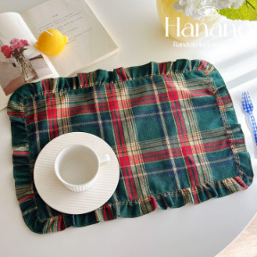 圣诞节格子餐垫木耳边装饰桌布餐巾拍照背景布百搭高级感餐桌垫