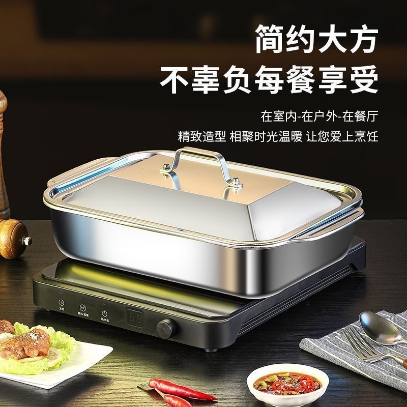 ステンレスの魚焼き皿の長方形の家庭用の厚い深皿のトレーの電磁ストーブの商用のザリガニの魚焼きの皿は直接供給します。