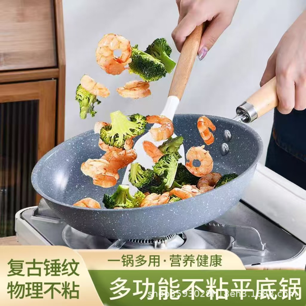 石紋フライパン家庭用麦飯石不粘着鍋フライパン炒め鍋電磁炉ステーキ通用ガスコンロ