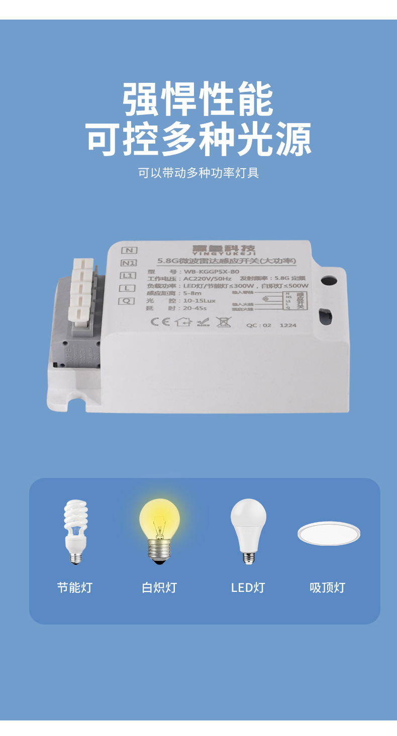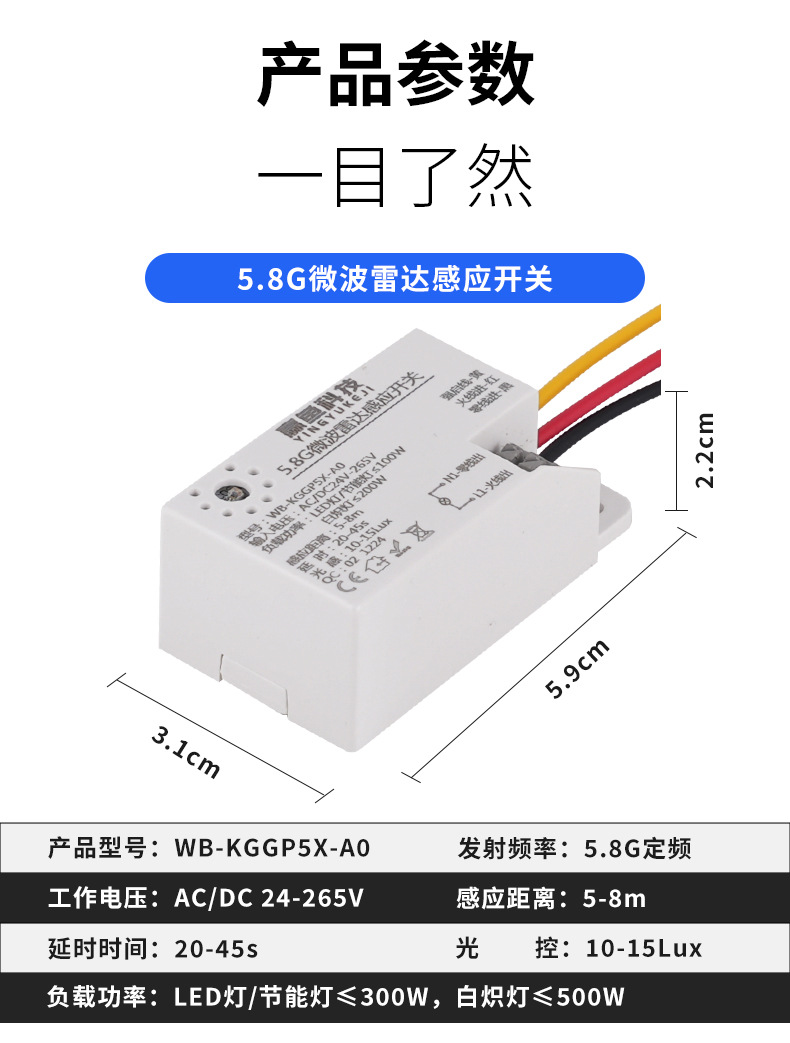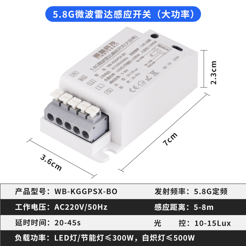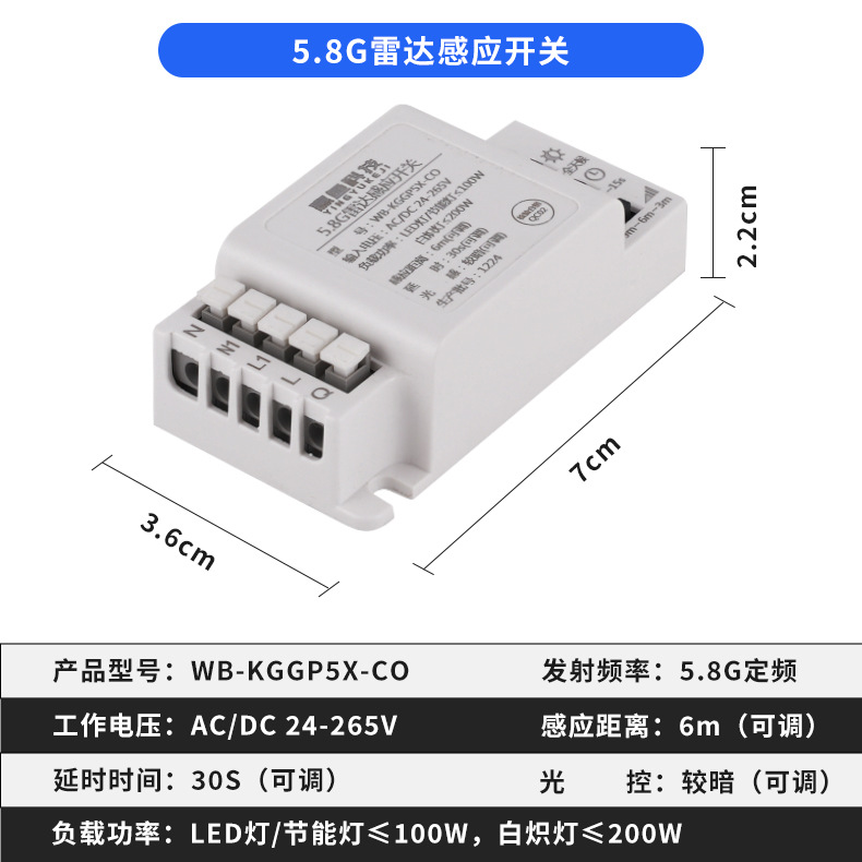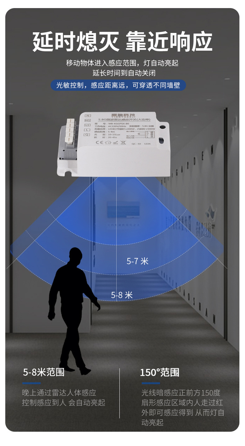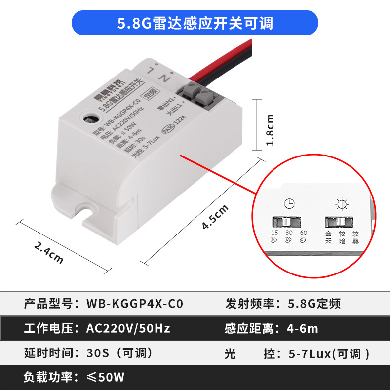 5.8Gマイクロ波レーダー誘導スイッチ赤外人体誘導遅延スイッチ調整センサー廊下センサー