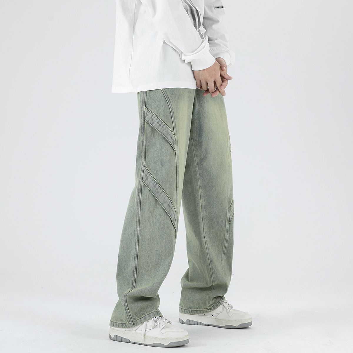 デザインジーンズ メンズ 2024 秋冬 カジュアル ウォッシュ加工 オールド 大きいサイズ ストレート