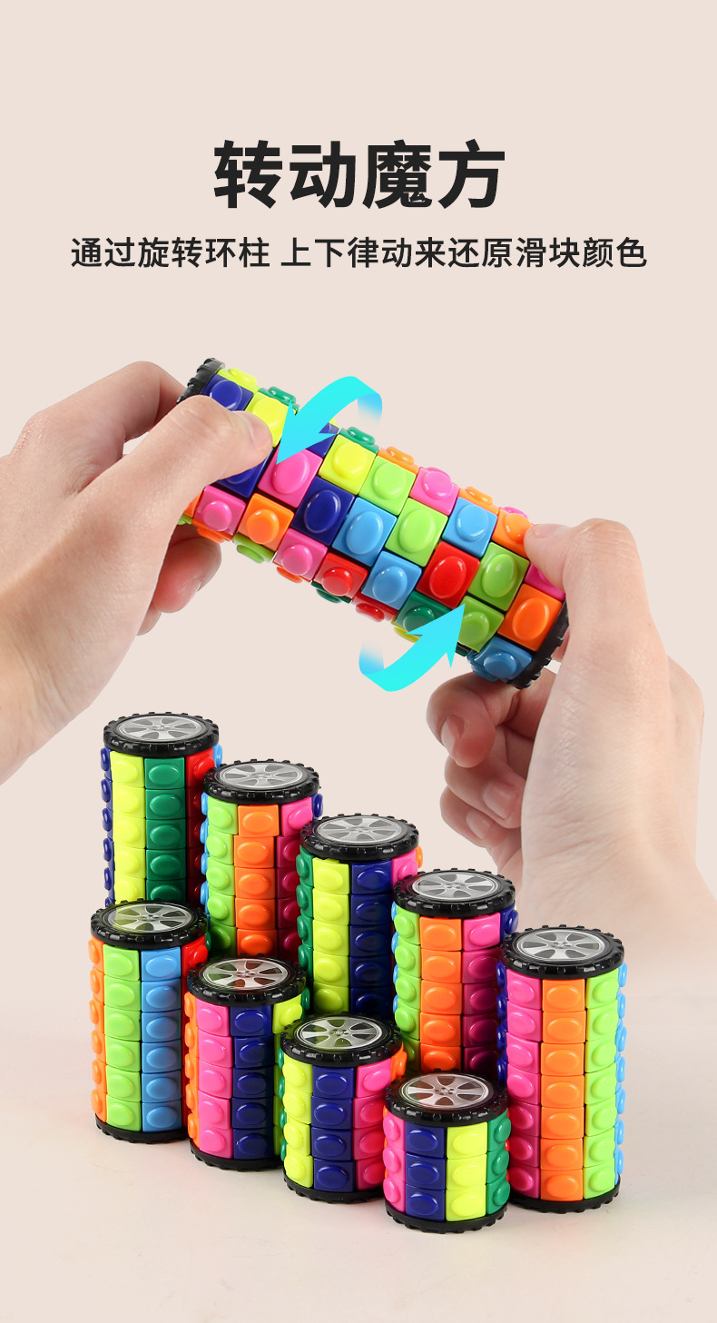 クロスボーダー益智立体魔塔トウモロコシ円柱形魔塔ルービックキューブ回転創意知能減圧玩具バッチ