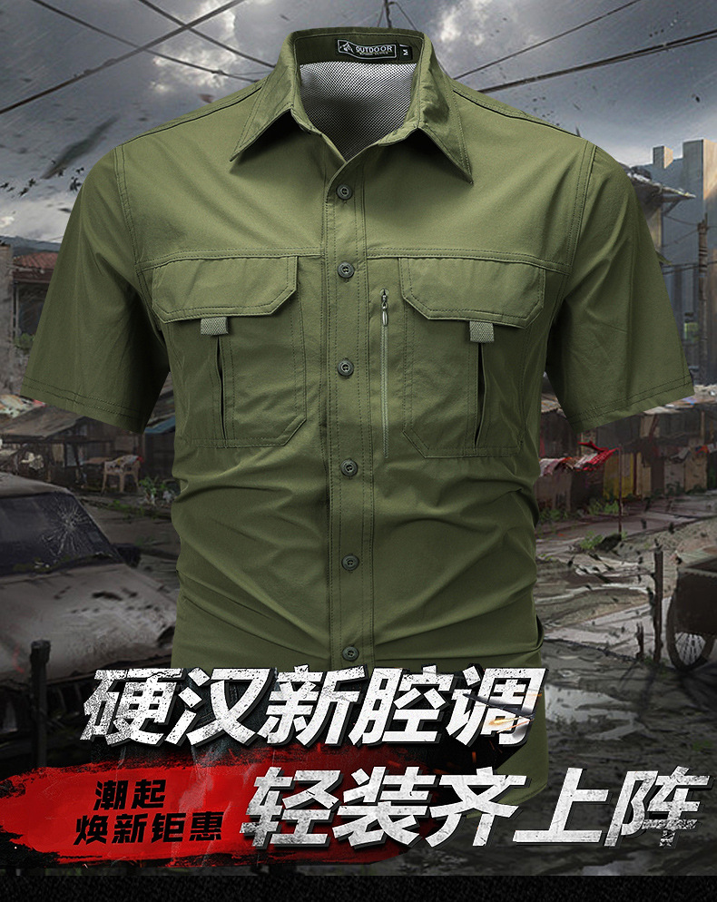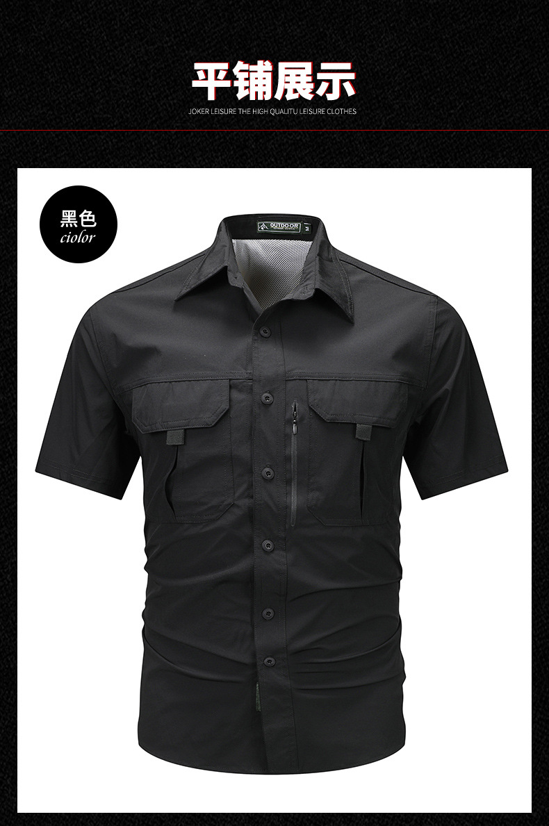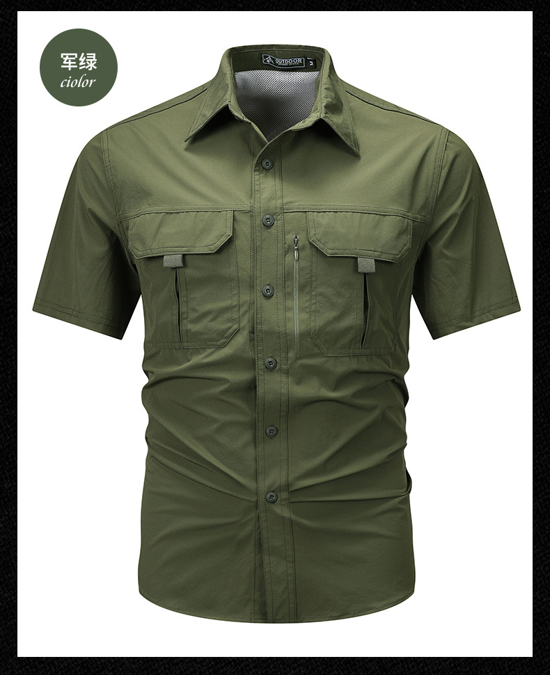 2025 夏の新カジュアルメンズカーゴシャツミリタリーフィット速乾性半袖シャツワークメンズトップ