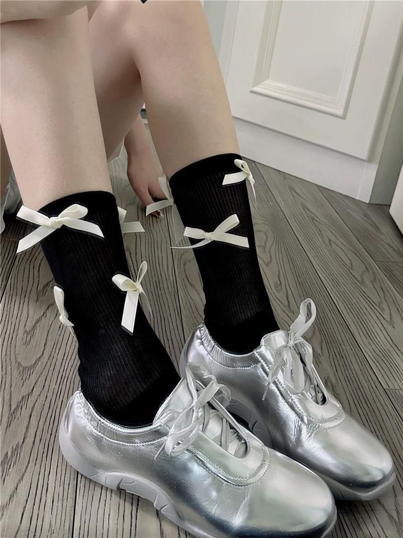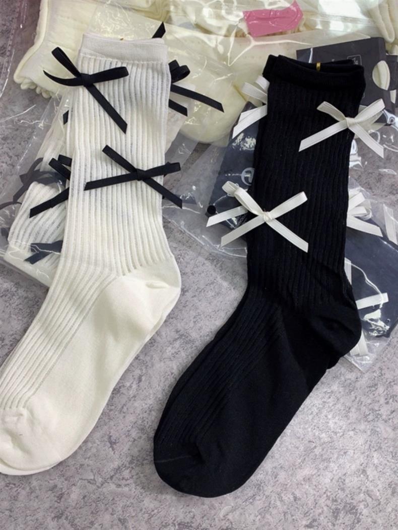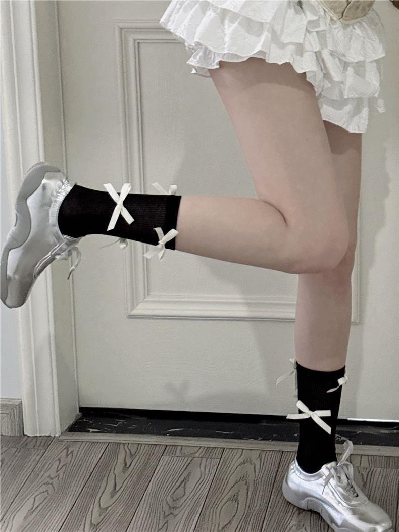 日系新商品y 2k千年レトロ植毛大蝶結び中筒靴下