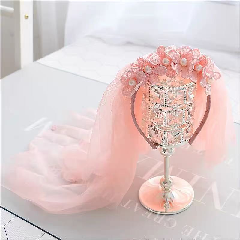 新しい超仙気なプリンセス風子供用ネットガーゼヘアバンド、花とパールのヘアアクセサリー。