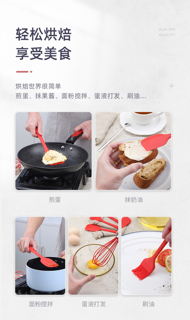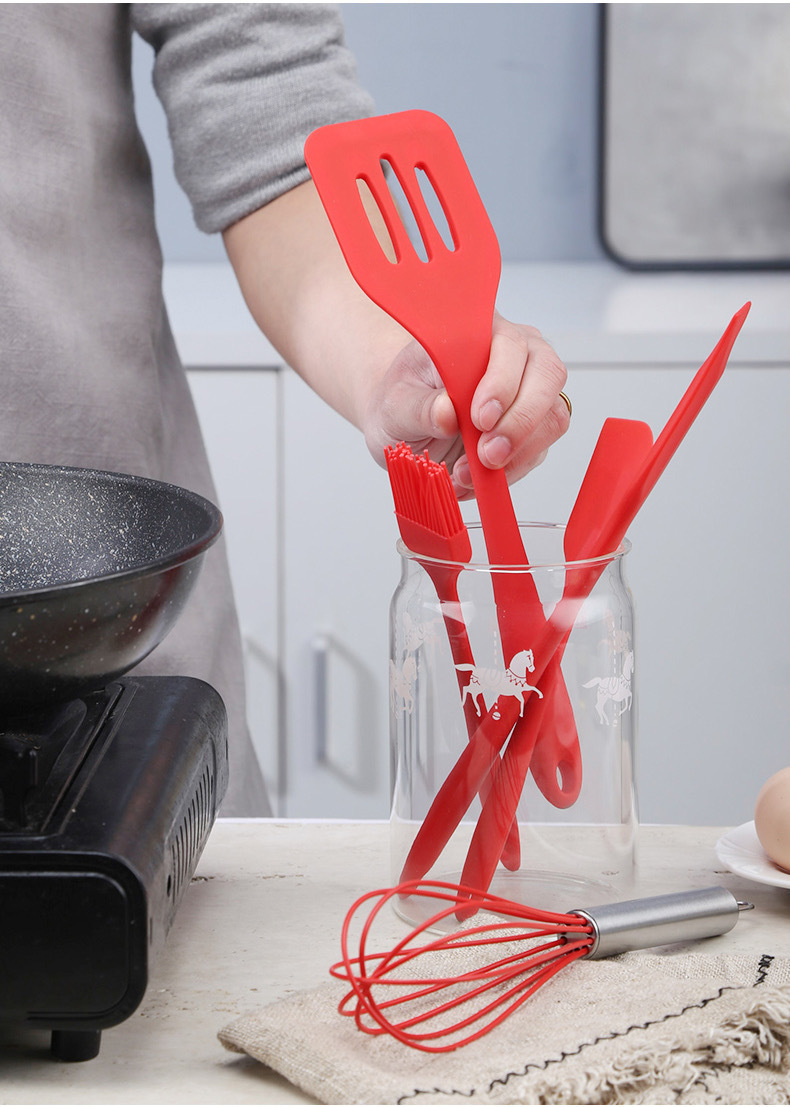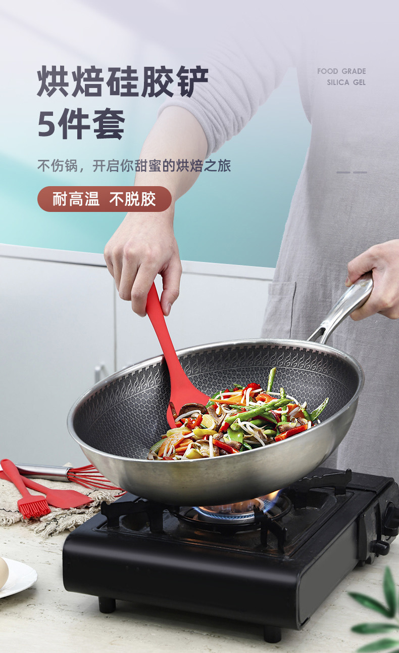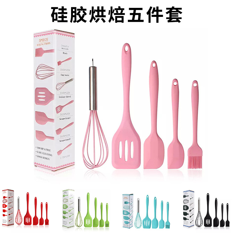 硅胶刮刀五件套厨具漏铲打蛋器油刷工具烹饪套装厨房不粘锅防烫