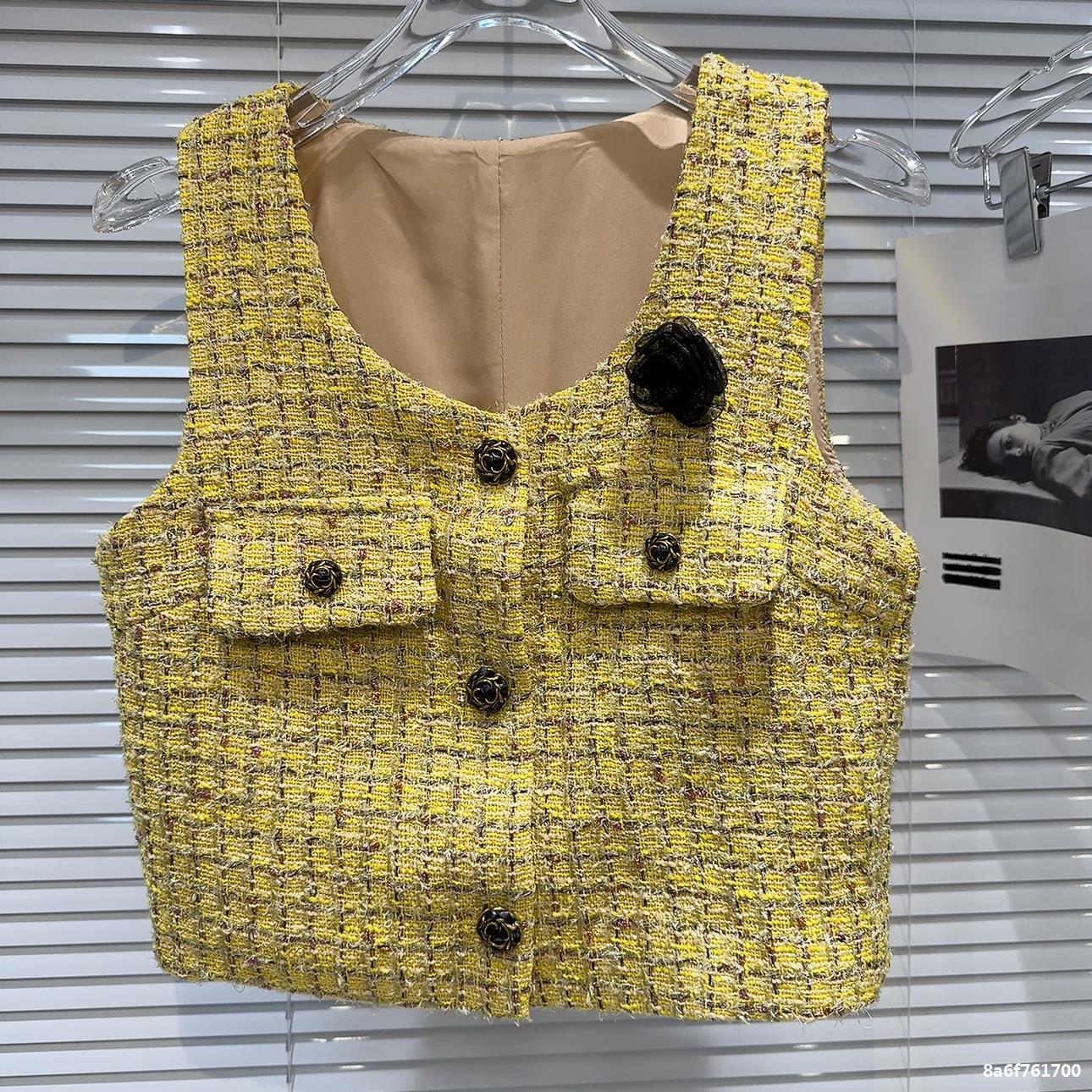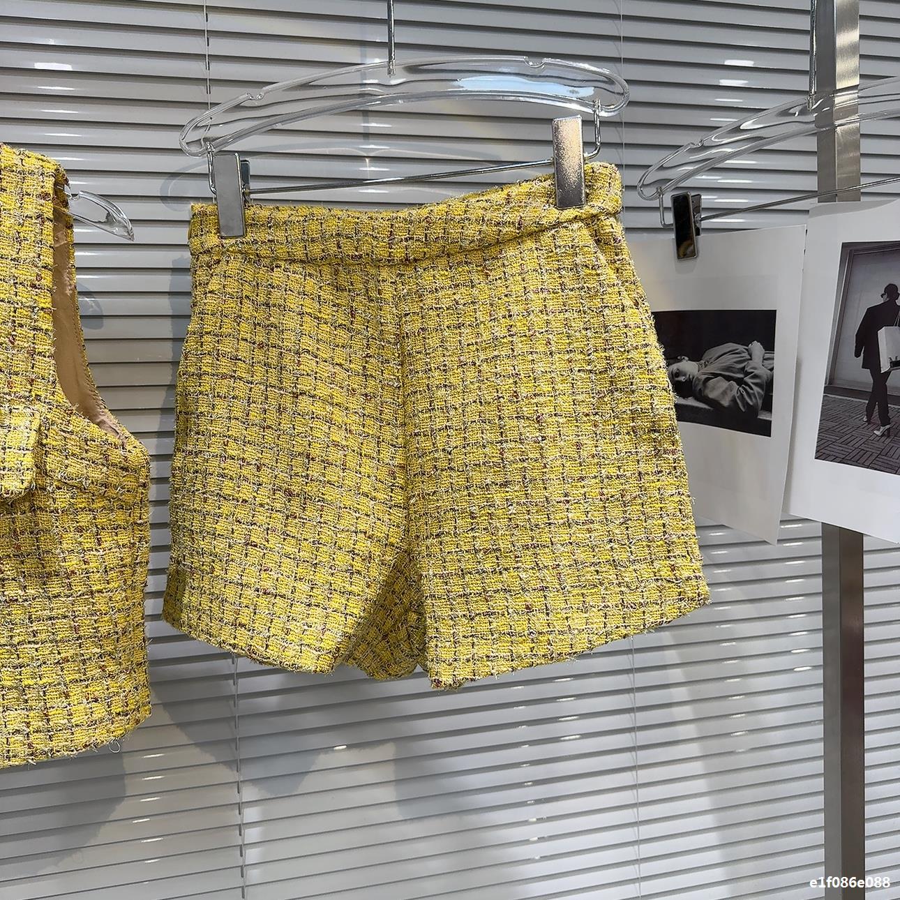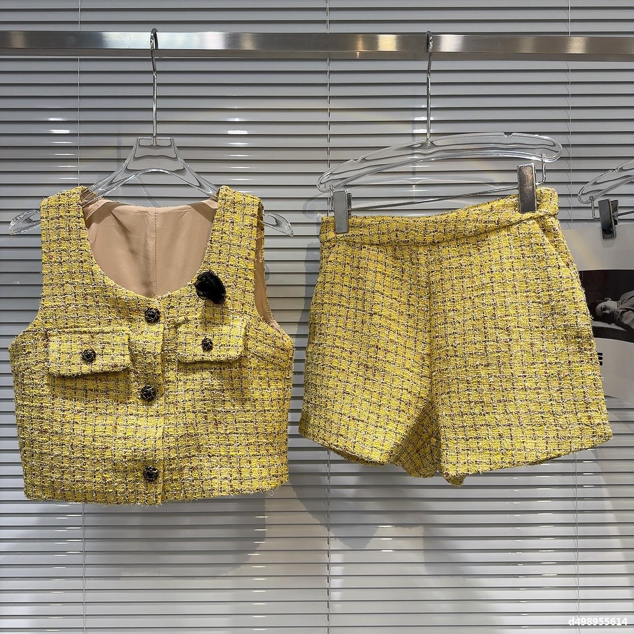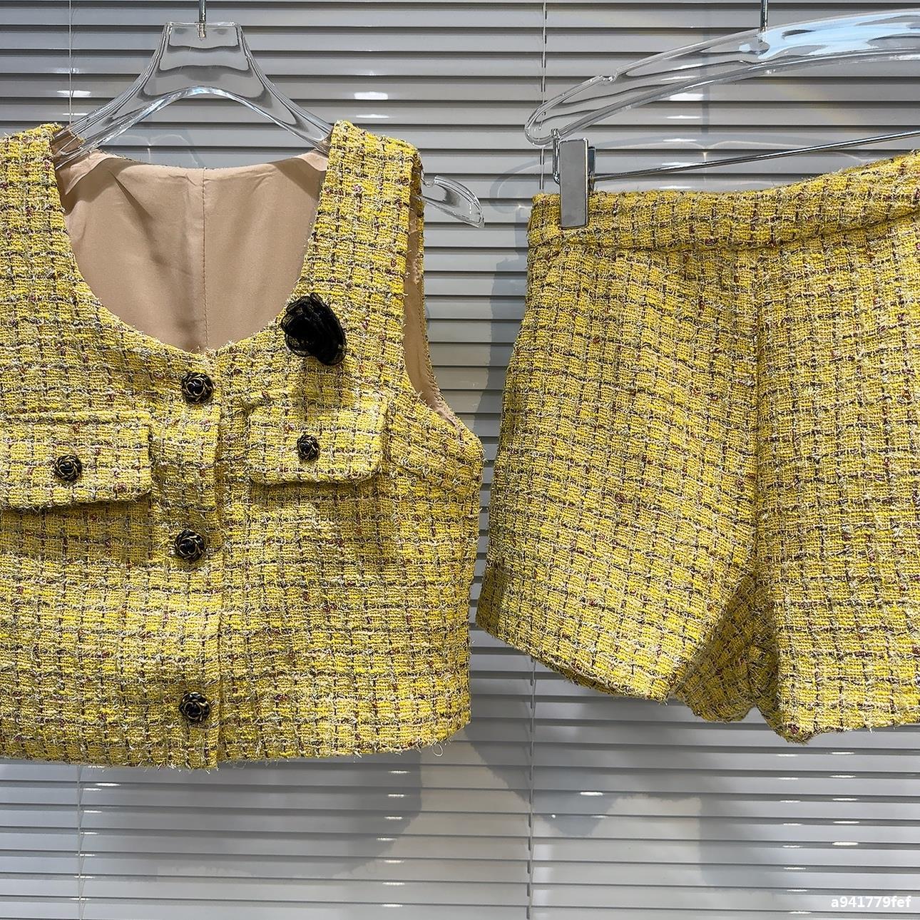 ネット紅同金2024夏新小香風名媛花ピン粗花柄ベスト三分半ズボンセット