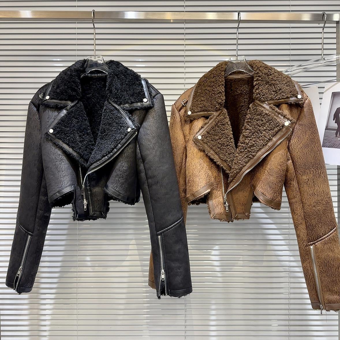 ネット赤同金2023冬の新型揚げ街の襟付きジッパー袖口の質感毛皮一体ジャケット皮衣女