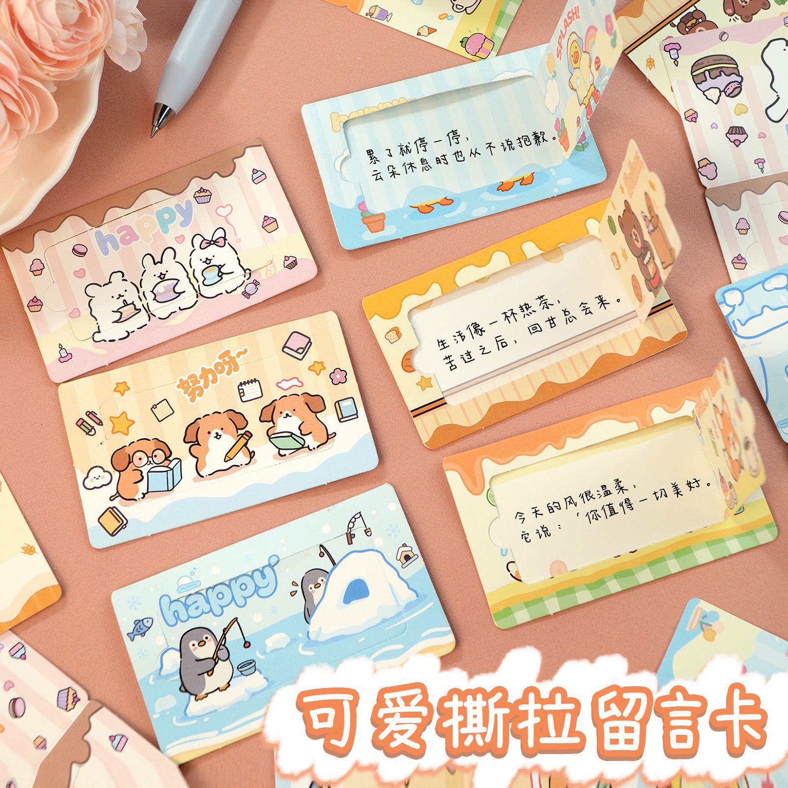 可爱撕拉留言卡卡通ins高颜值手撕刮刮卡可爱撕撕乐奖励祝福卡片