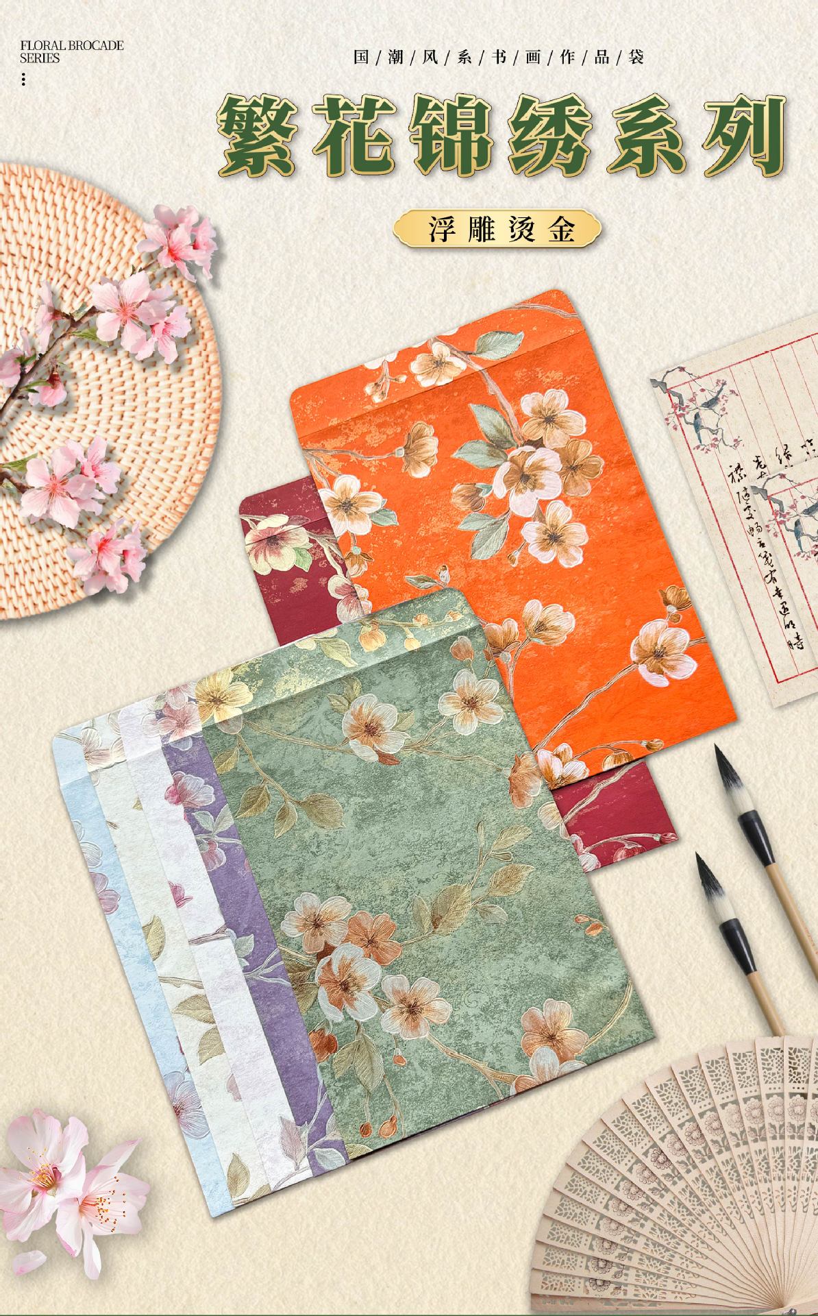 エンボス加工金箔封筒 高級感のある模様 バレンタインデー ロマンチック 文芸 レトロ 恋愛手紙 ギフトバッグ 書道バッグ