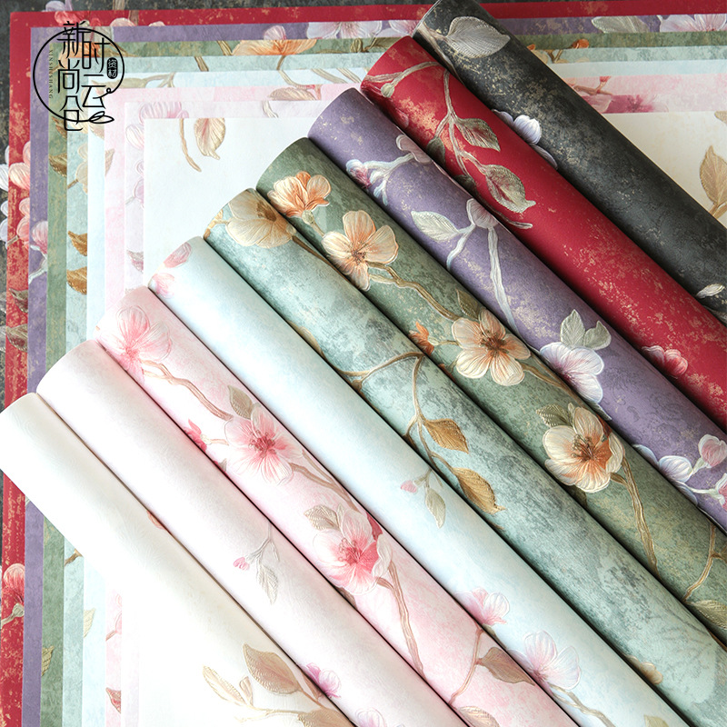 新しいピーチエッジフラワーバスケットシリーズエンボスブロンズフラワー包装紙ロマンチックな花束ギフト風化花材