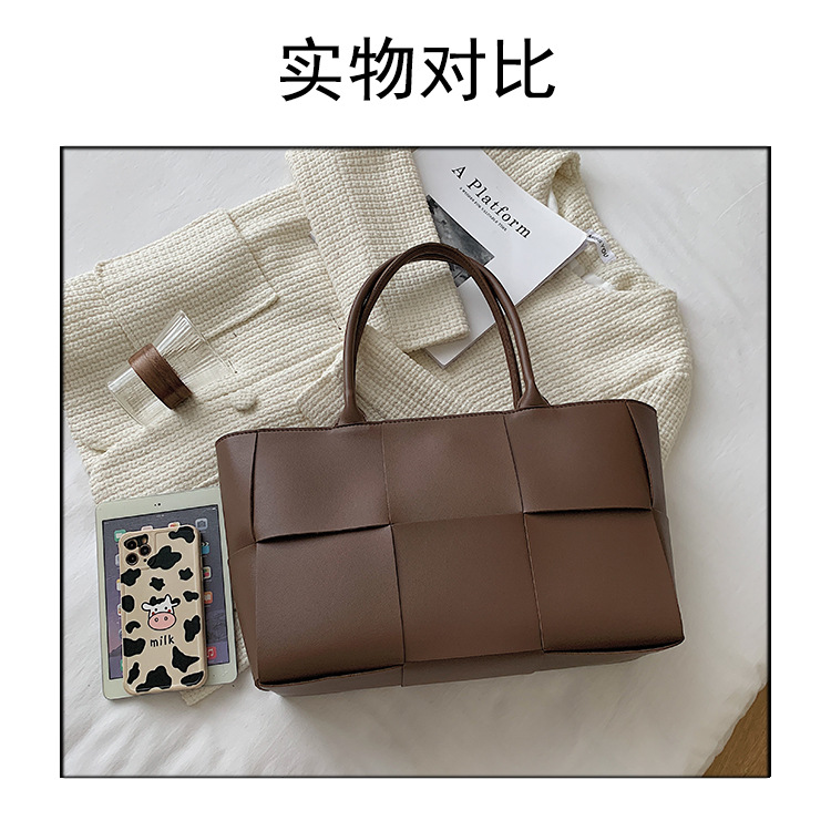 クロスボーダー新作大型織りレディースハンドバッグアーバンシンプルカジュアル菱形大容量通勤野菜かごバッグ