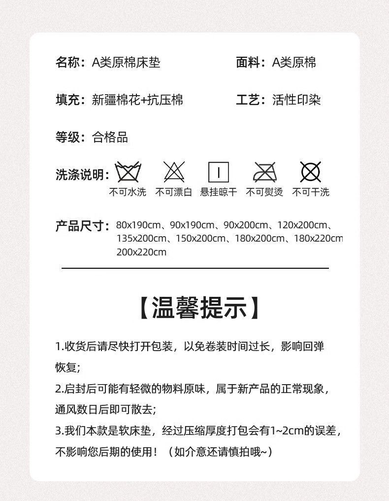 商品番号 新疆綿熱転写マットレス
