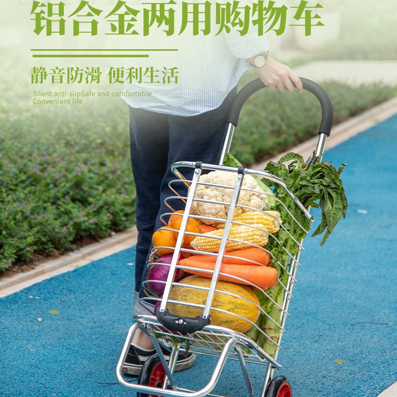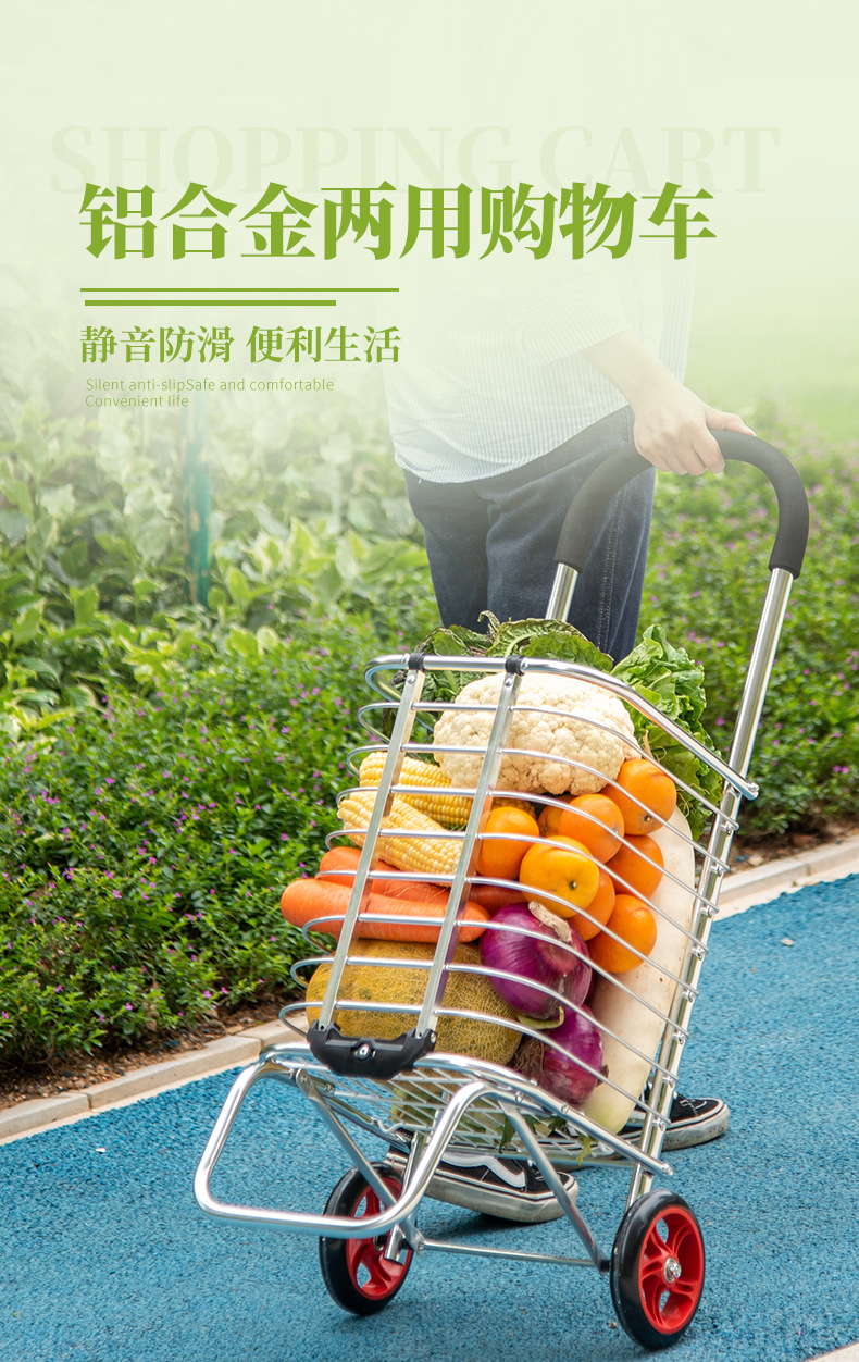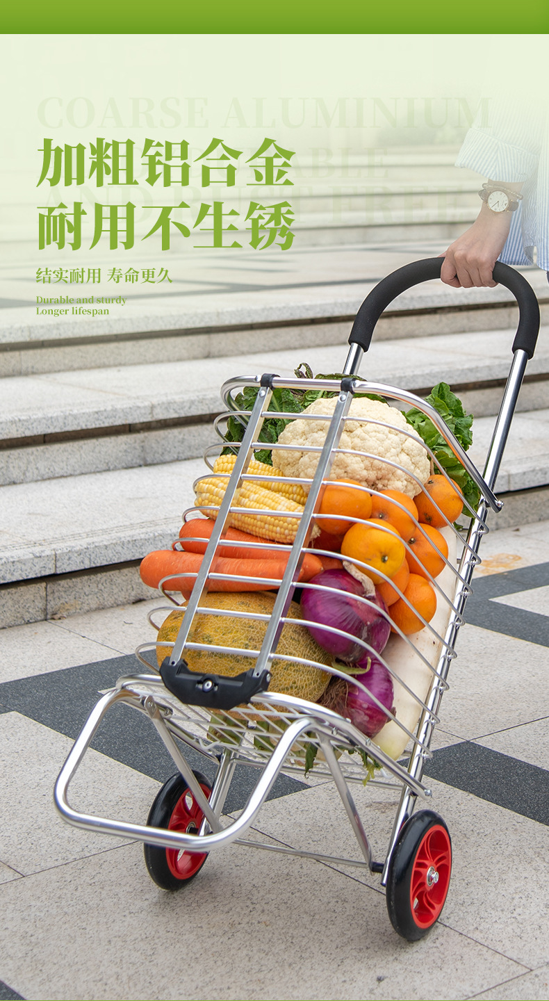 伸縮式ショッピングカート、小型トロリー、スーパーマーケット、高齢者向けの家庭用階段昇降、軽量アルミニウム合金チューブ折りたたみトロリー、食料品ショッピングカート