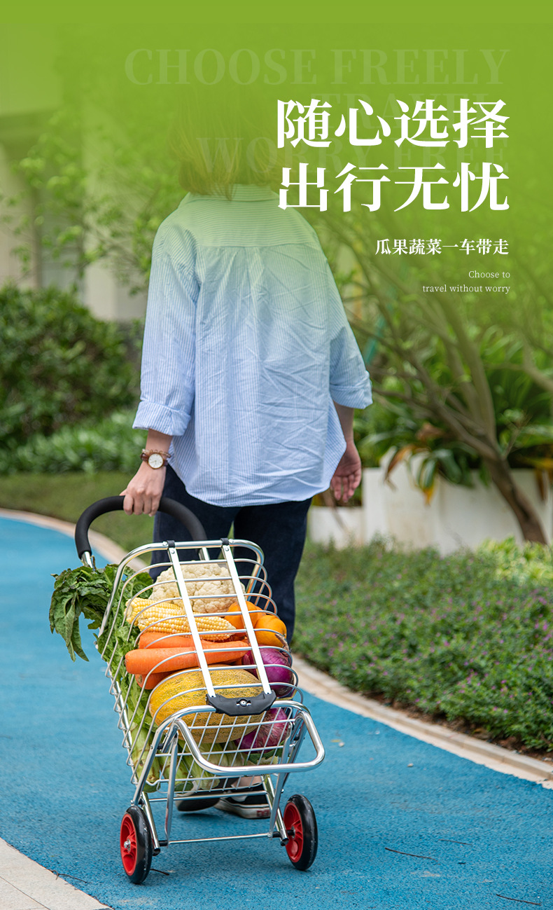 透明のショッピングカートは野菜車の小さい車を買って軽く携帯してポールの家庭用トレーラーの老人を折り畳みます。