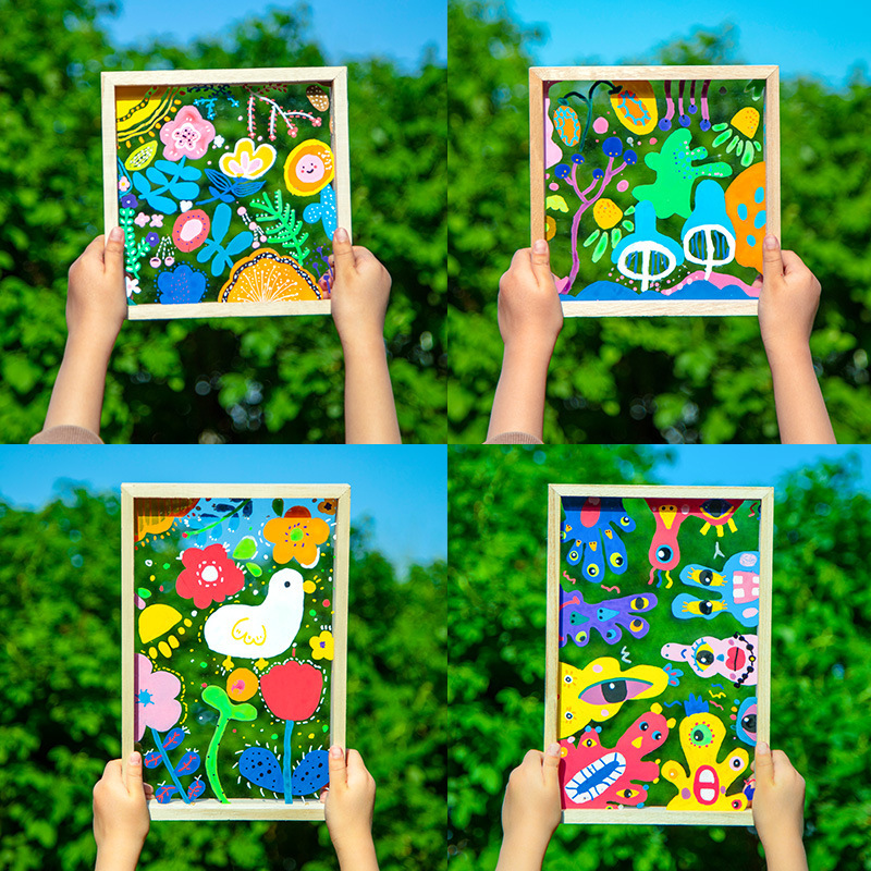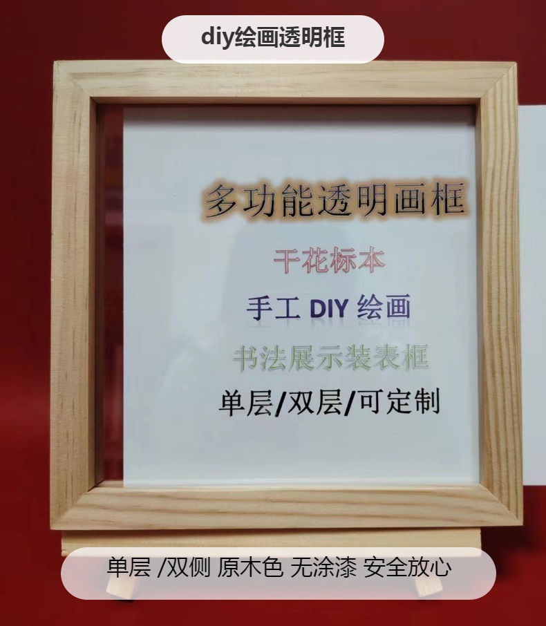 アクリル透明ガラス額縁実木フォトフレーム子供幼稚園diy絵画創意落書き手作り材料