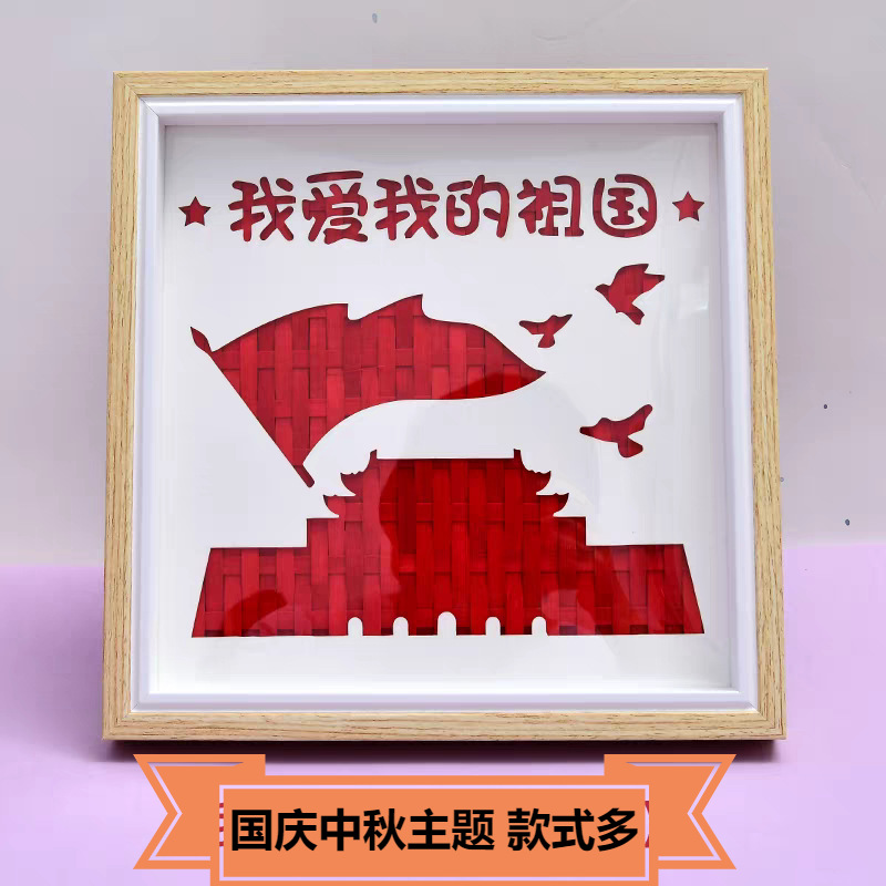 国庆节藤编中秋节手工diy材料包非遗竹编画框画儿童爱国红色