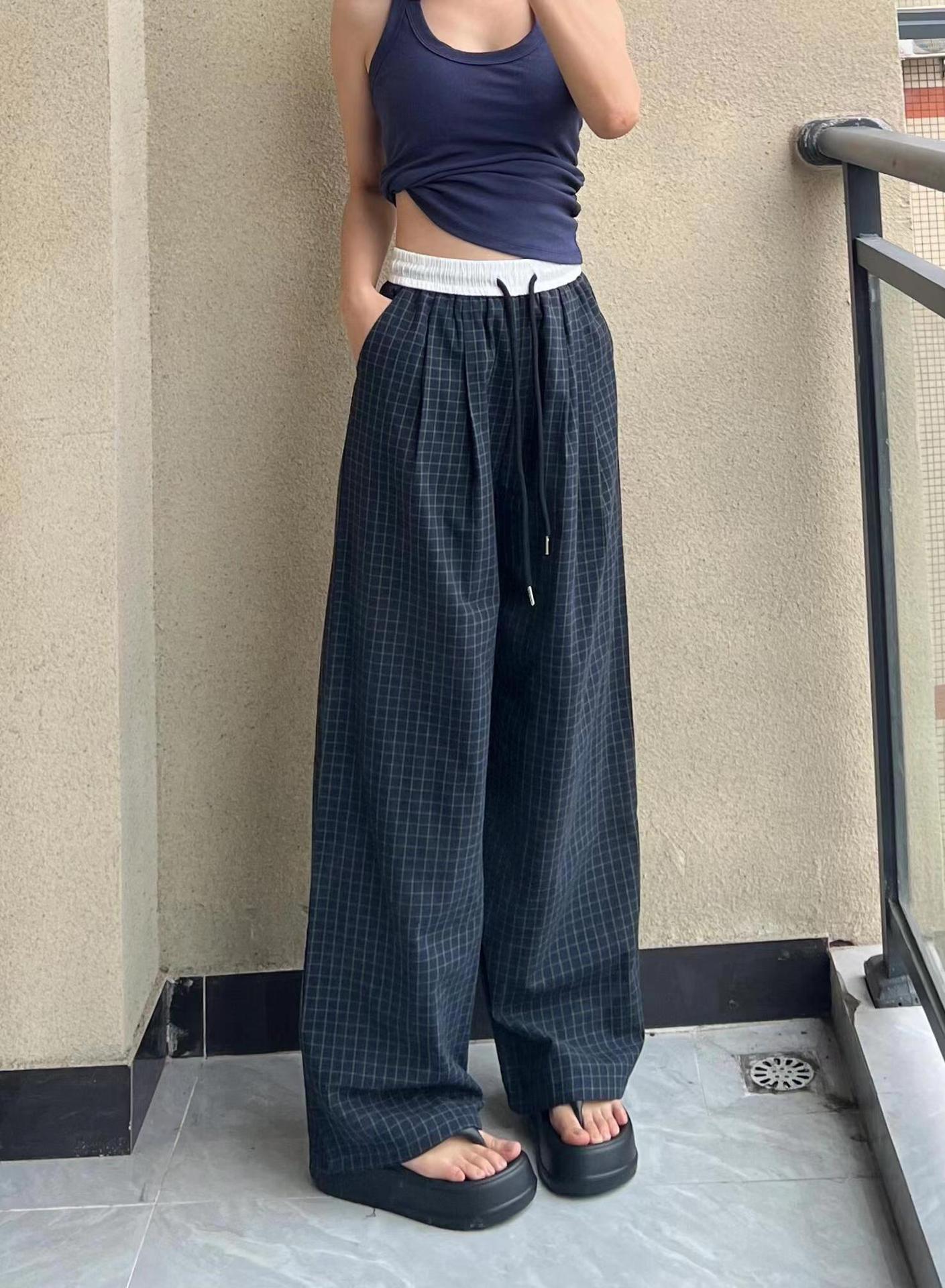 アメリカの高街のレトロな衝突色の格子の広い足のカジュアルなズボンの女性の新型のゆったりしていて高級感があります。