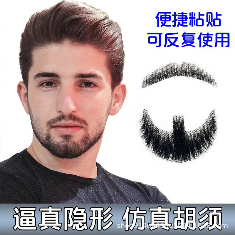 男性シミュレーション偽ひげ化粧道具ひげ手織り本物の髪ひげステルス頬髭胡八字胡卸売り