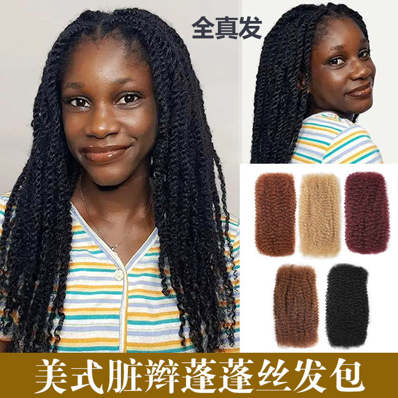 人毛ふわふわシルクヘアパッケージレゲエドレッドドレッドパイルパーマと染色可能ウィッグアクセサリーアフロキンキーバルク