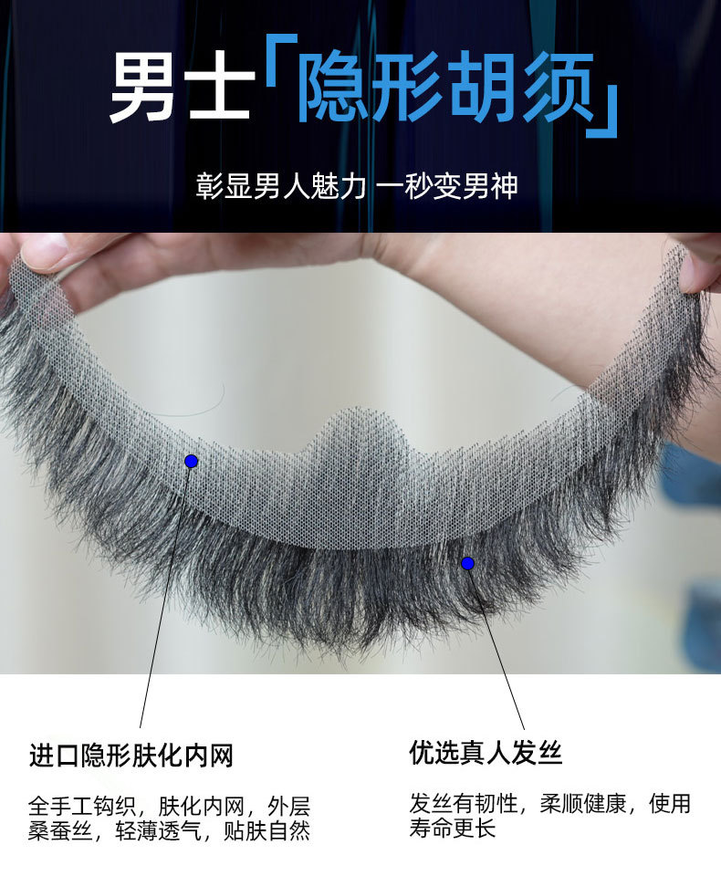 男士胡子真人发仿真假胡须隐形逼真影视化妆易容胡子男士道具