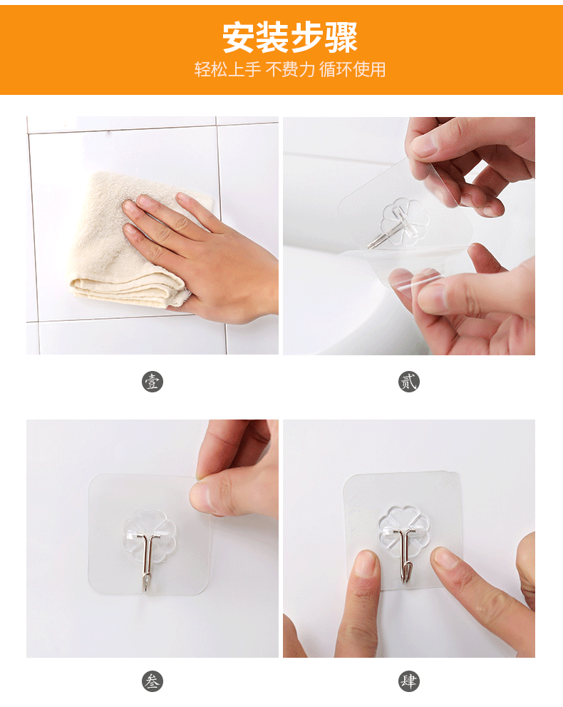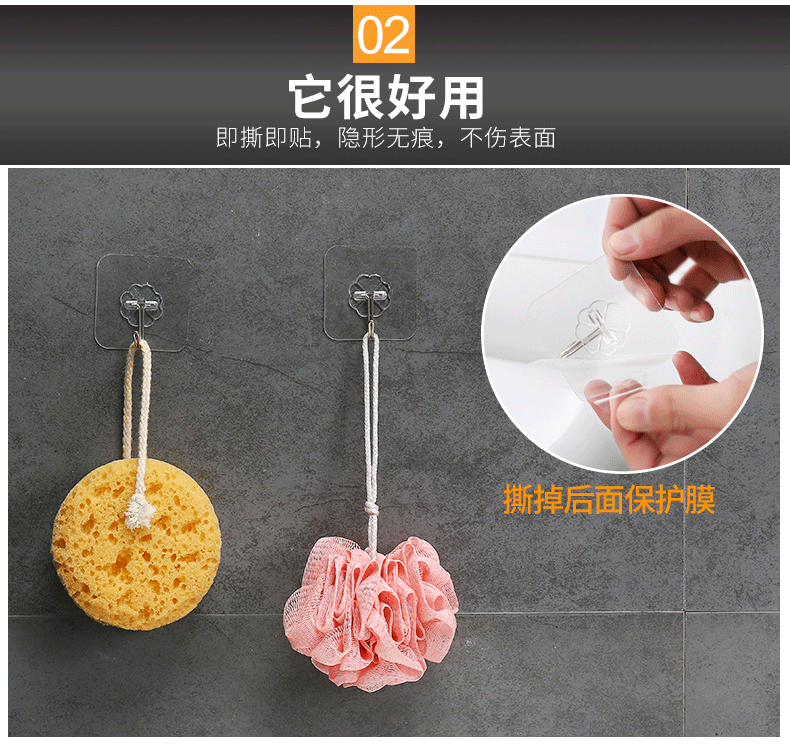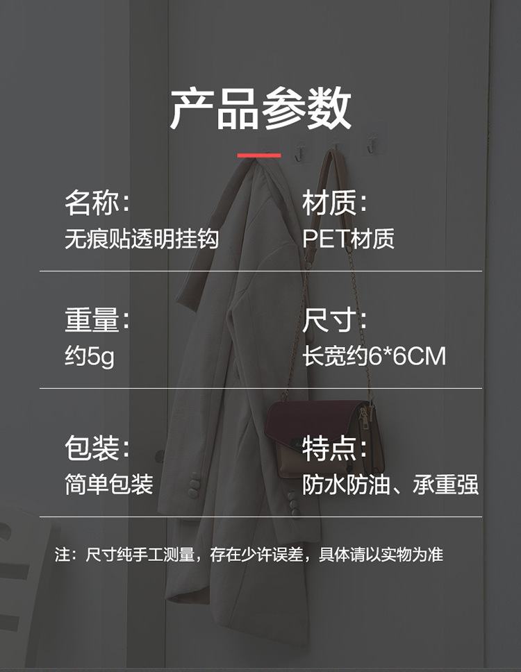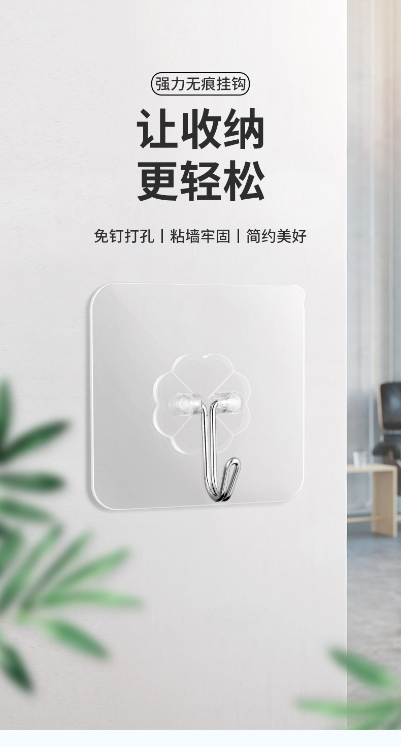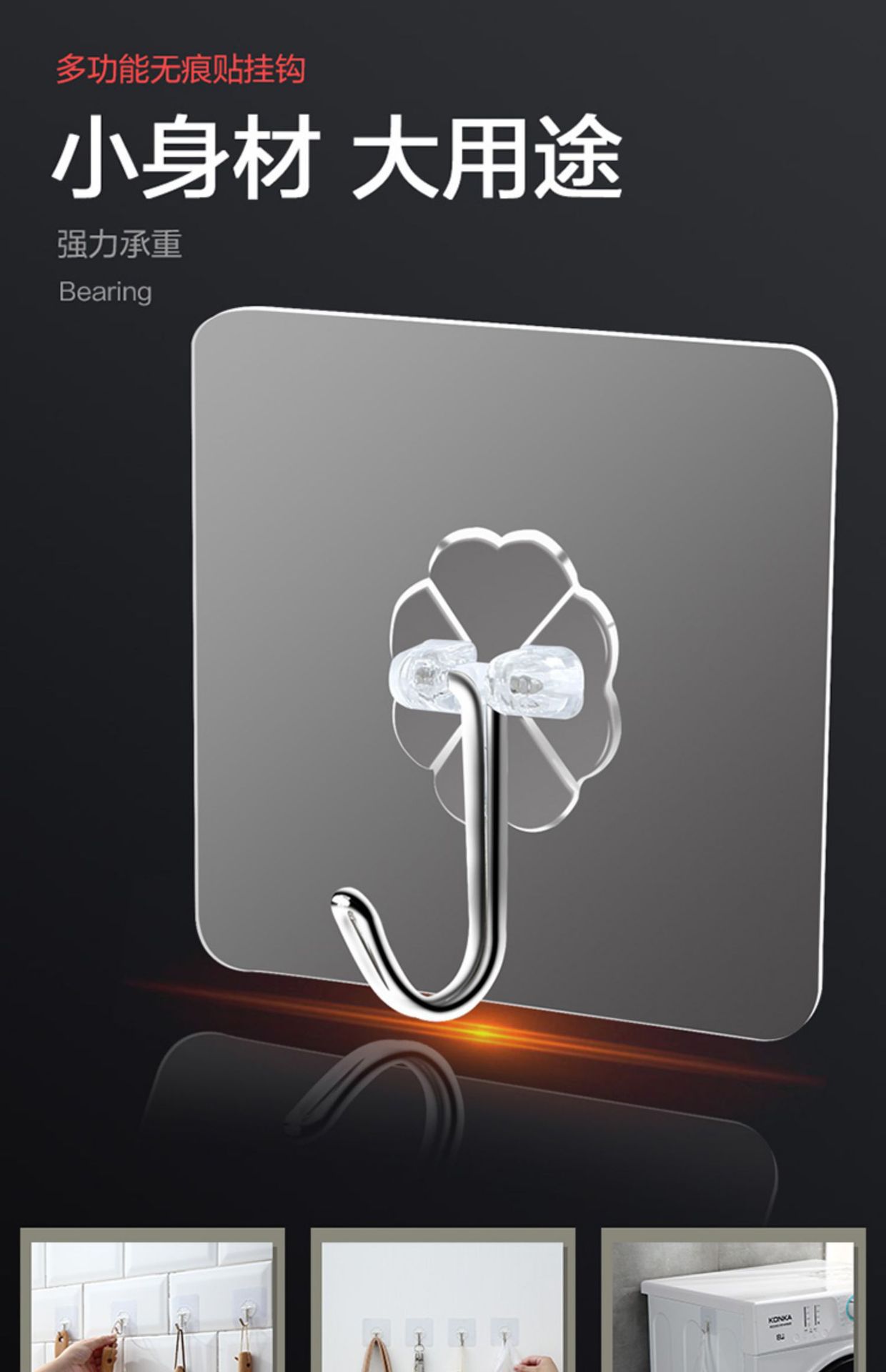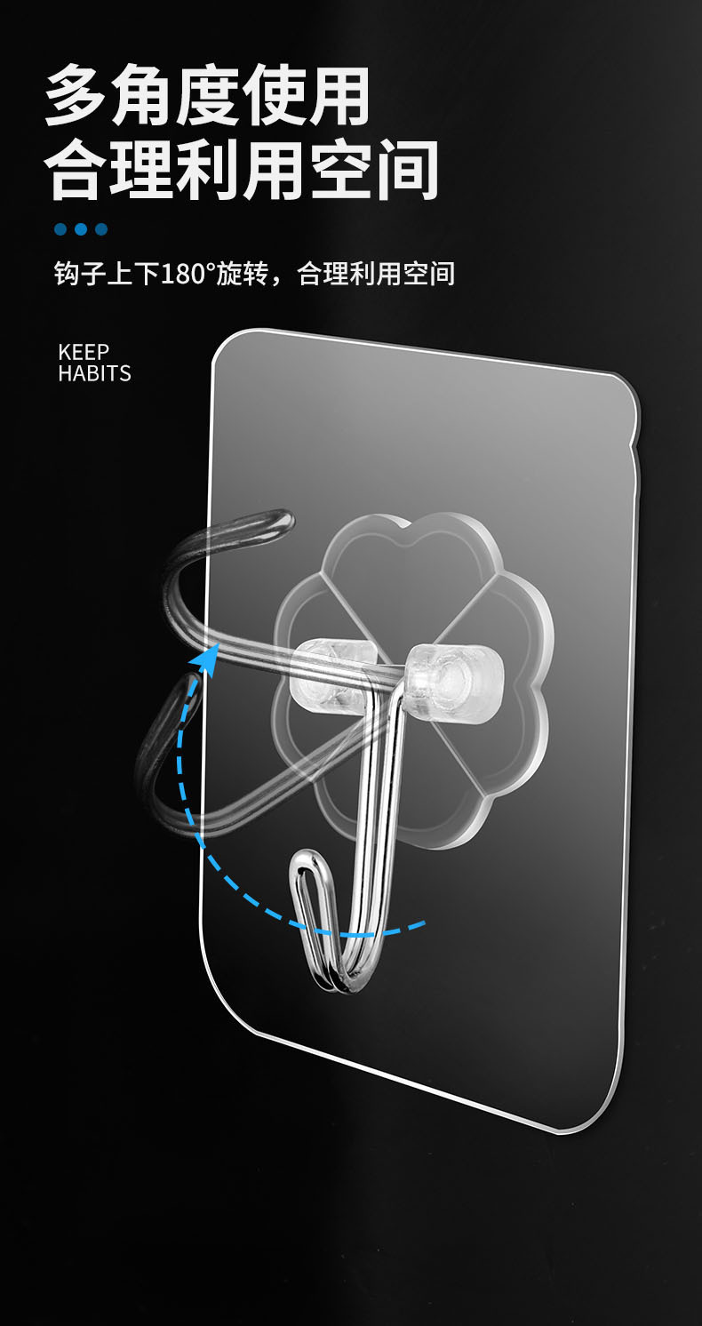 多機能強力無痕大フック透明伸線無穴フック特大ドア後壁コートフック