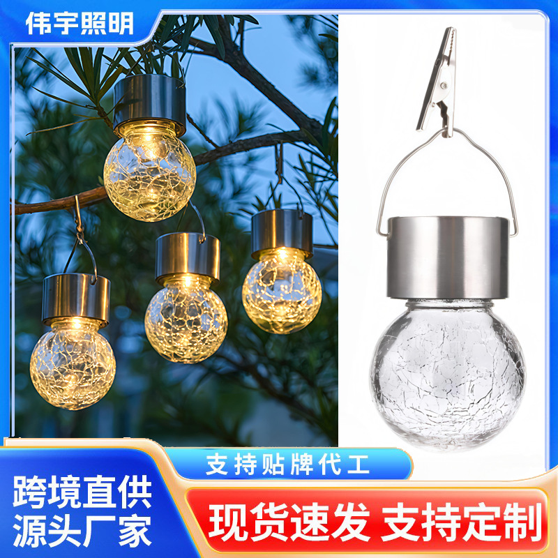 跨境太阳能灯户外裂纹吊球灯防水挂树灯庭院民宿装饰氛围灯小夜灯